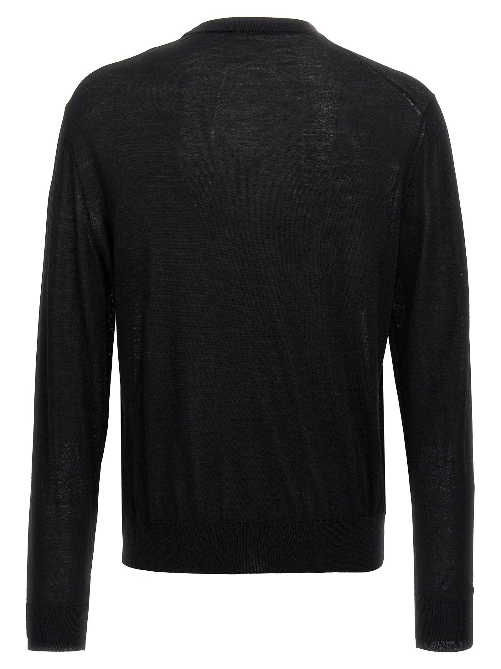 Maglione di lana con intarsia logo anteriore, collo dell'equipaggio, maniche confuse, patch di logo in pelle.