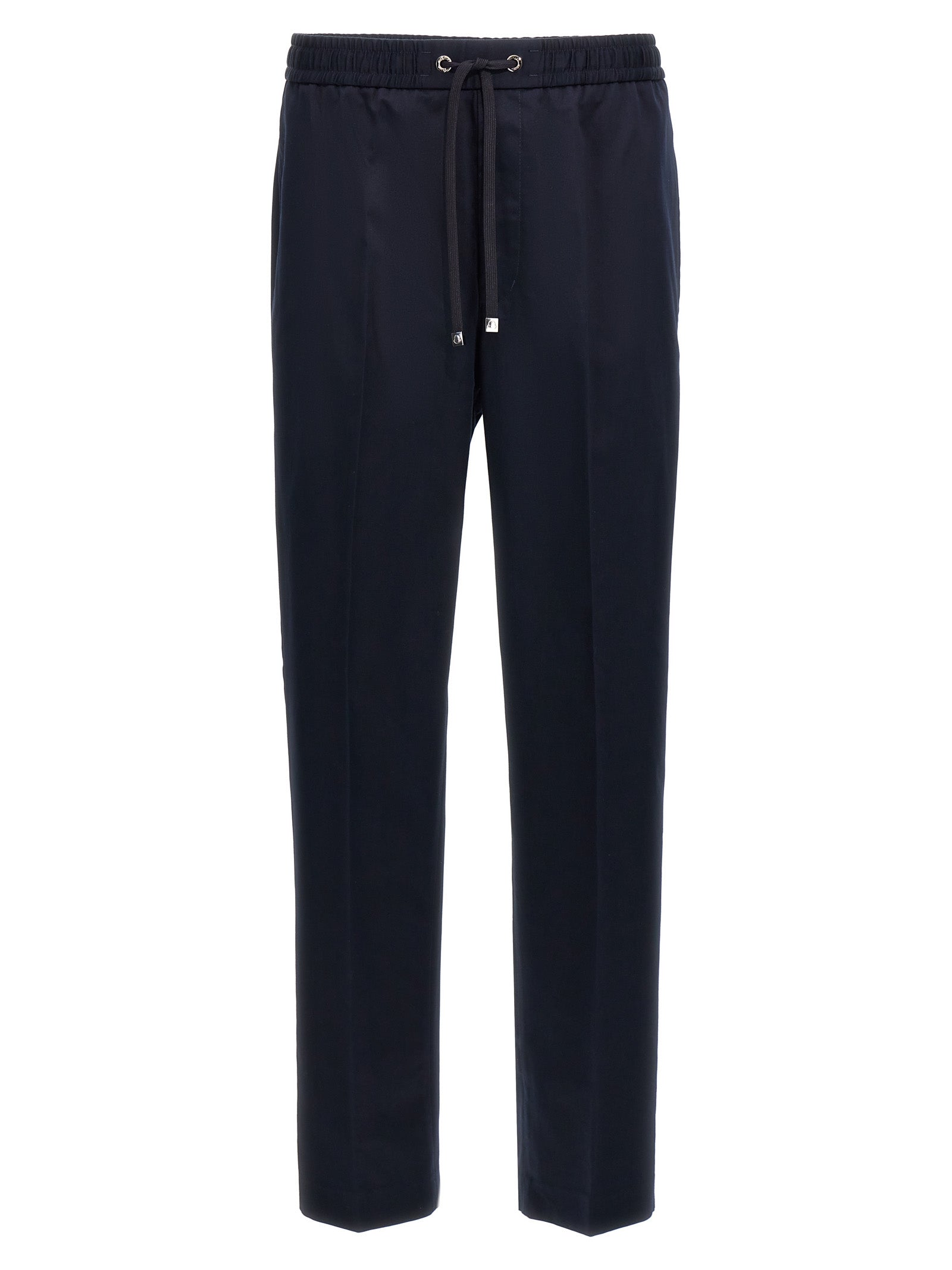 Pantaloni di cotone con patch di logo in pelle sul retro, elastico e coulisse in vita, lempi con zip, tasche.