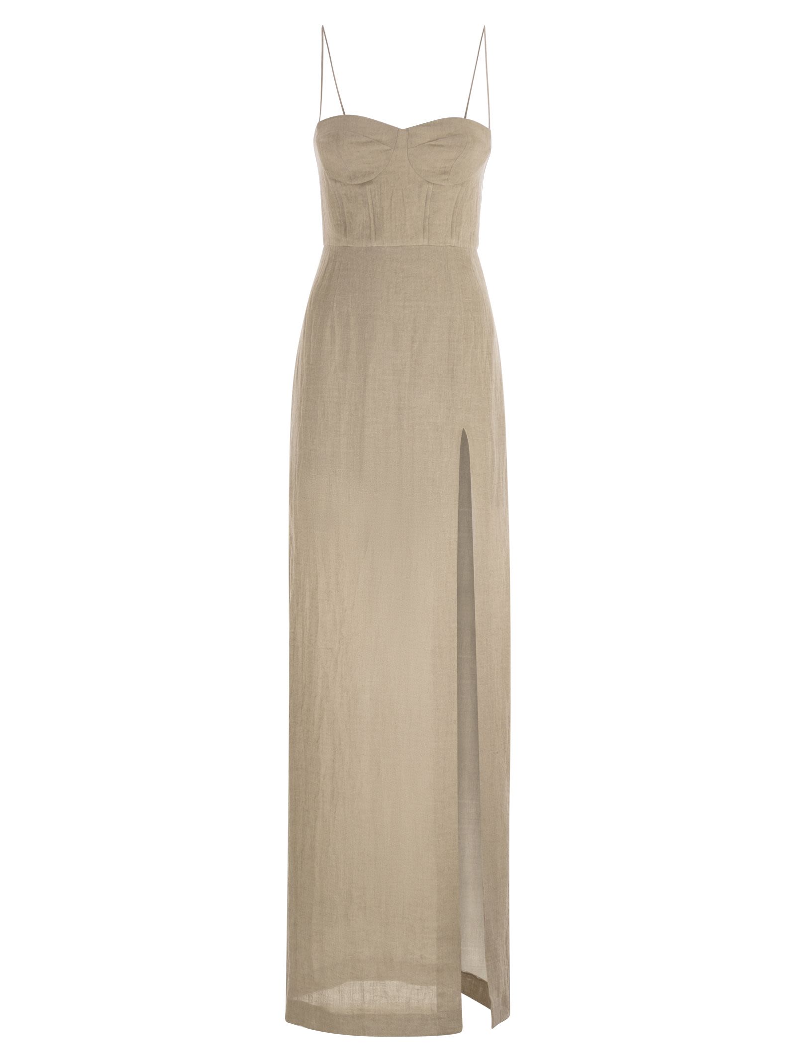 Vestito in tessuto di lino fine. Caratterizzato da un corpetto e una fessura laterale. - Fit stretto - spalline sottili - lunghezza sopra l'ID di progettazione della caviglia: 25EO2M0H3003607M005 1119 1119