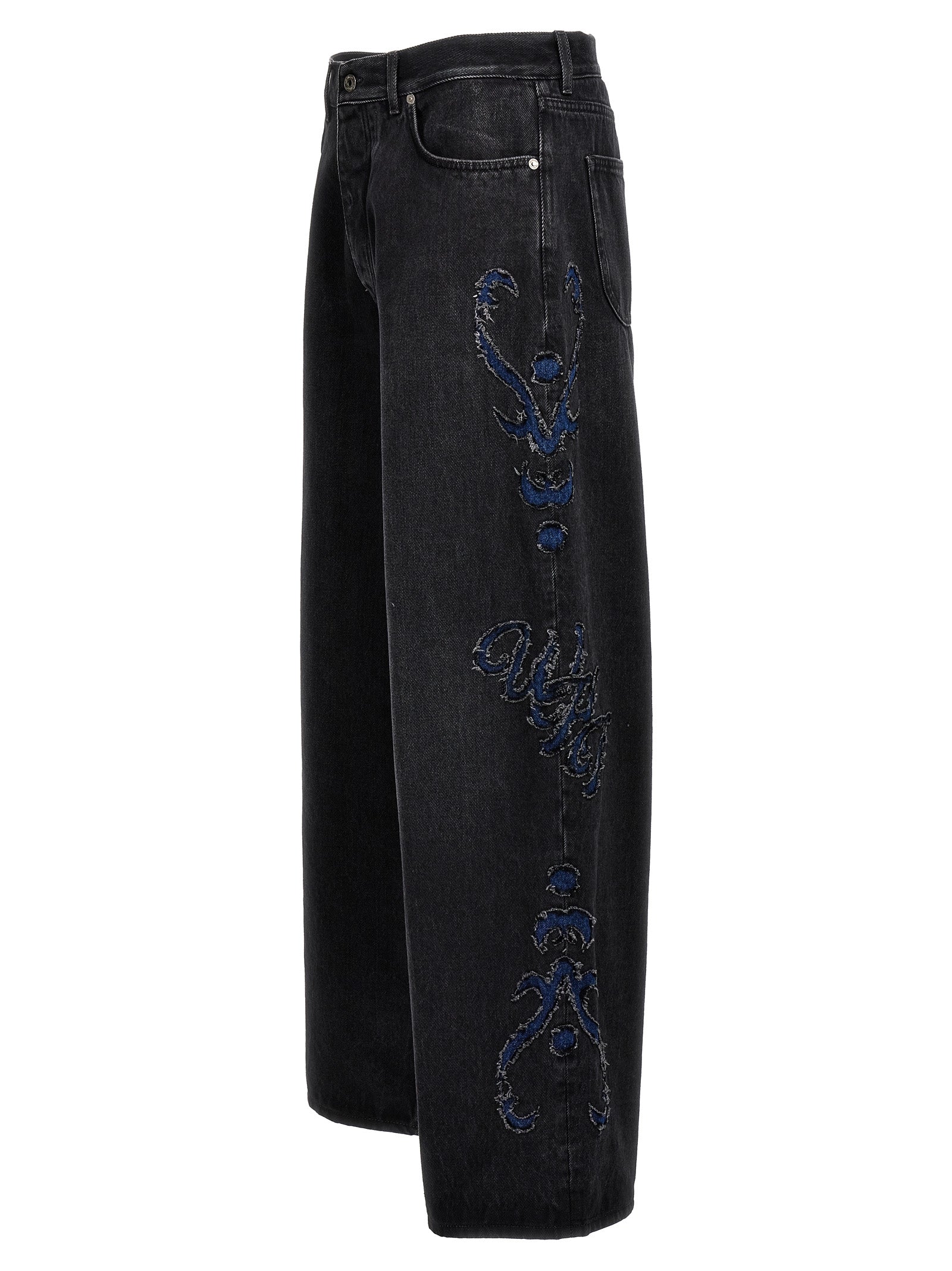 Jeans in denim "Nalover Super Gzzegy", gamba molto larga con dettaglio del logo laterale, vita alta e chiusura dei pulsanti.