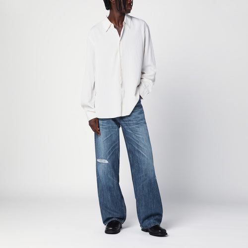 Camicia a strisce con miscela con viscosa avorio dalla nostra eredità con maniche lunghe con polsini a bottone, colletto classico e placca a bottone anteriore.