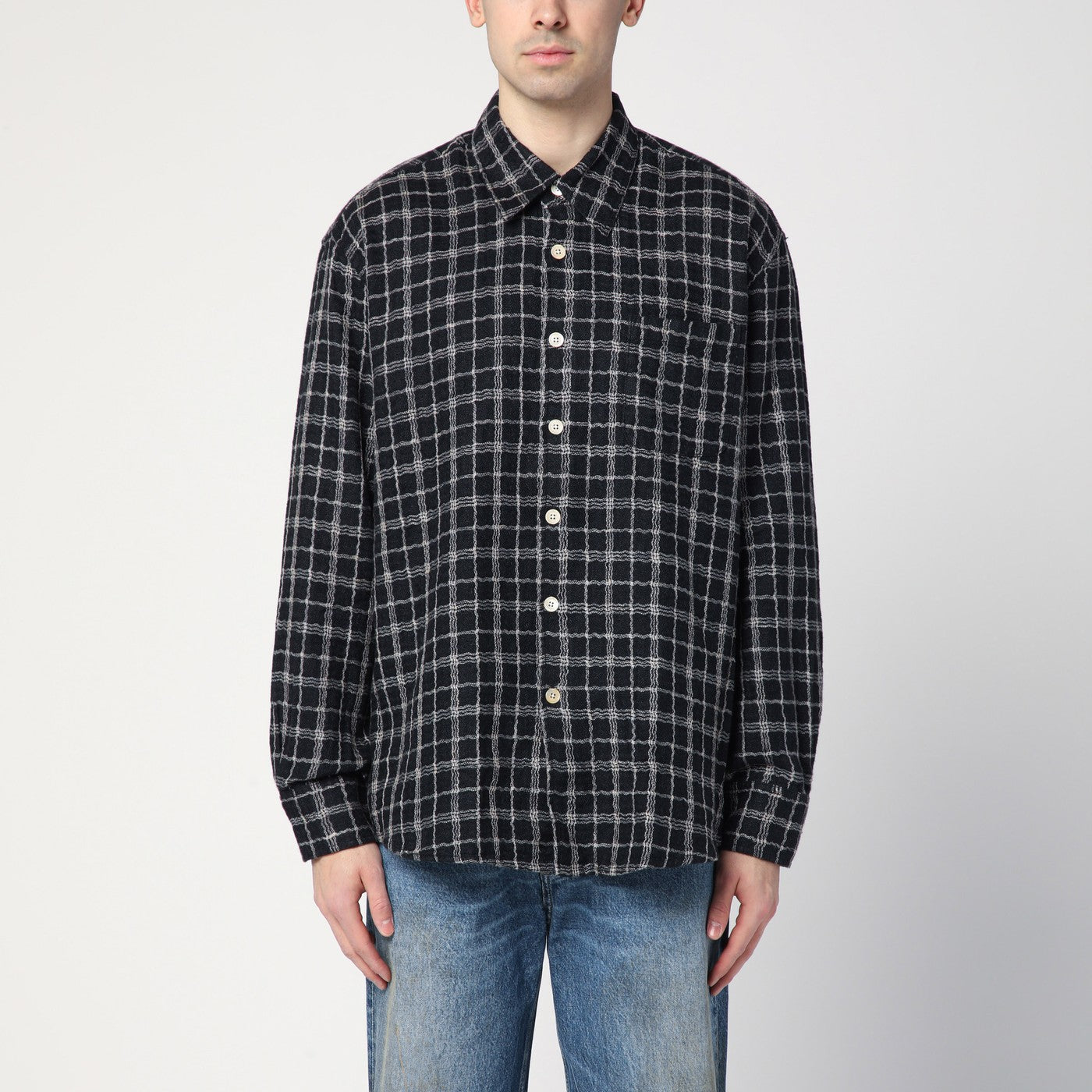 La nostra camicia a scacchi neri eredità in cotone e lino
