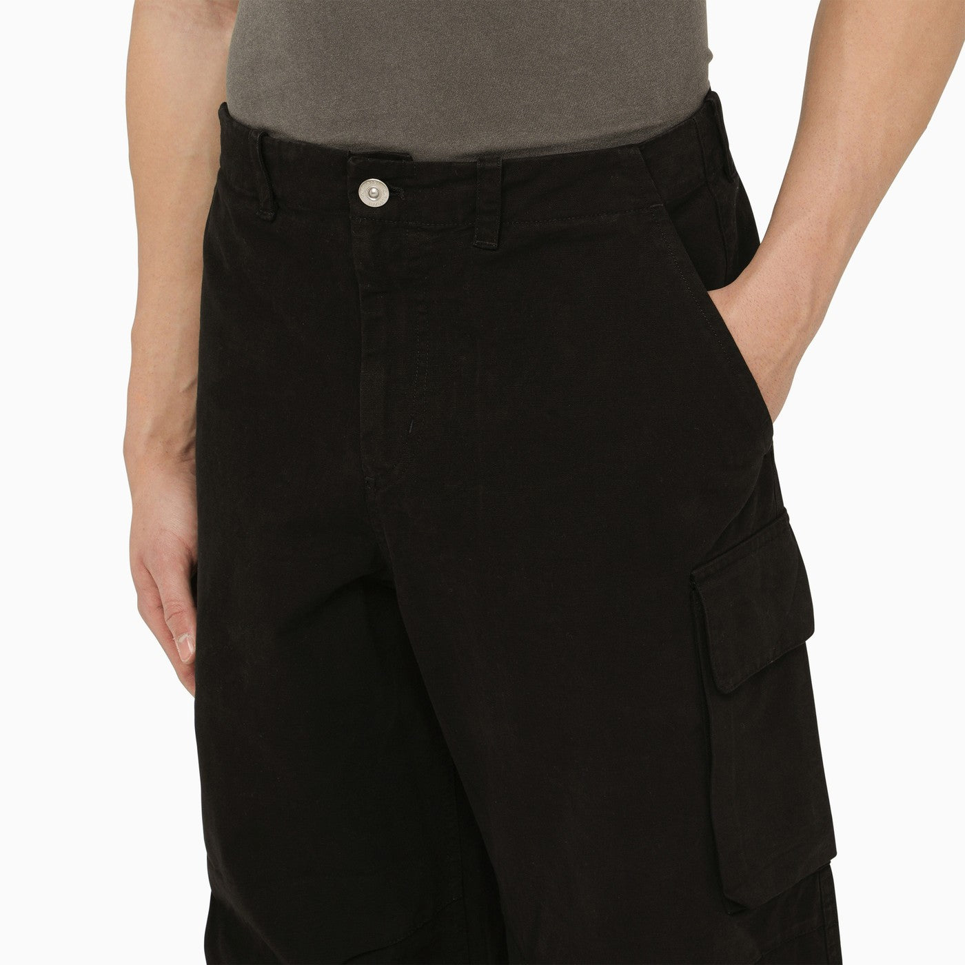 Pantaloni da carico di cotone nero dalla nostra eredità con una zip anteriore e un fissaggio a bottone, anelli della cintura, due tasche a marmellate laterali, una tasca del flatta posteriore e due tasche cargo laterali.