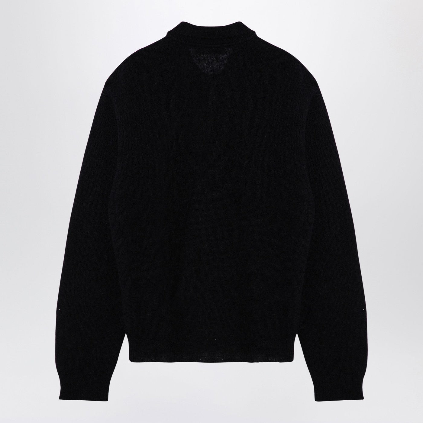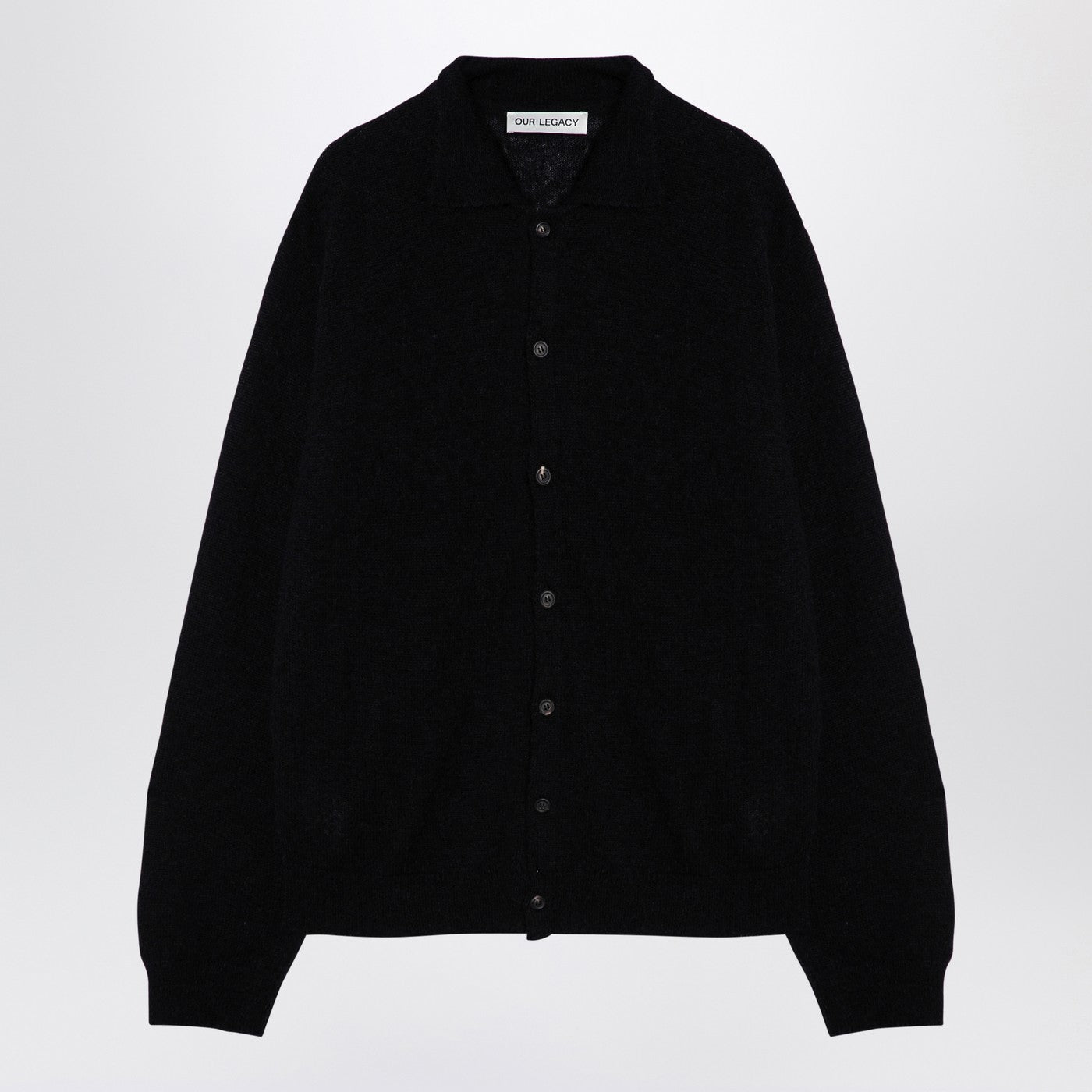 Cardigan con miscela di lana nera della nostra eredità con un collo di camicia, maniche lunghe, una pianta anteriore, orli a coste e un orlo dritto.