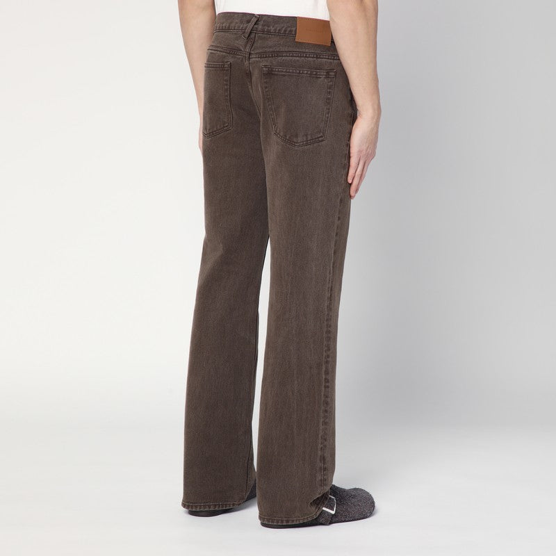 Pantaloni in denim in cotone sbiadito marrone dalla nostra eredità, con una chiusura anteriore e una chiusura di bottoni, anelli della cintura, cinque tasche classiche e una patch logo sul retro.