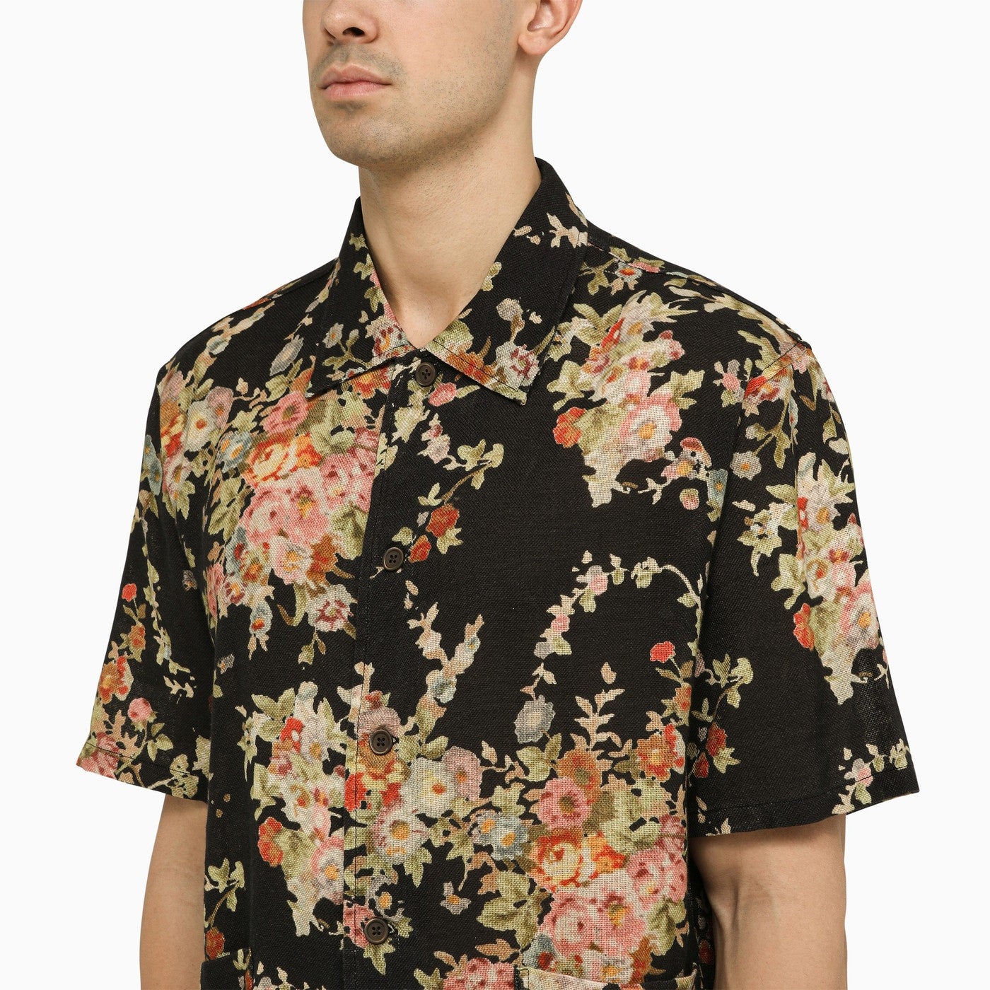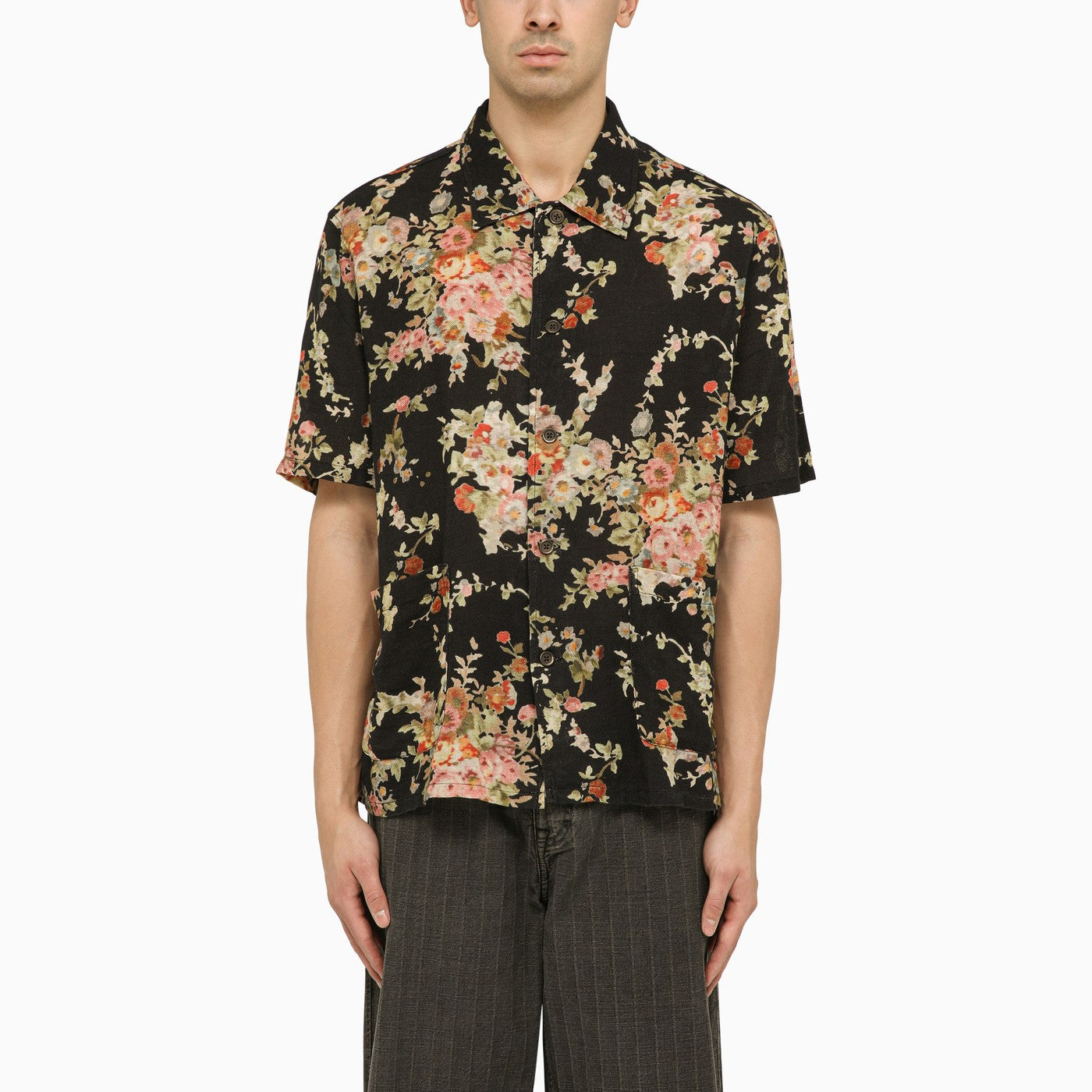 Black Cotton La nostra camicia legacy presenta un colletto appuntito, maniche corte, un fissaggio sul pulsante anteriore, una stampa floreale tutto multicolore e due tasche patch sul davanti.