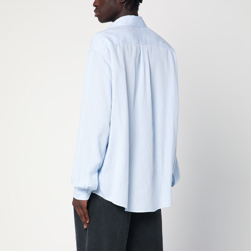 La nostra camicia legacy in miscela di viscose a strisce blu, con un classico colletto, abbottonatura frontale e maniche lunghe con polsini abbottonati.