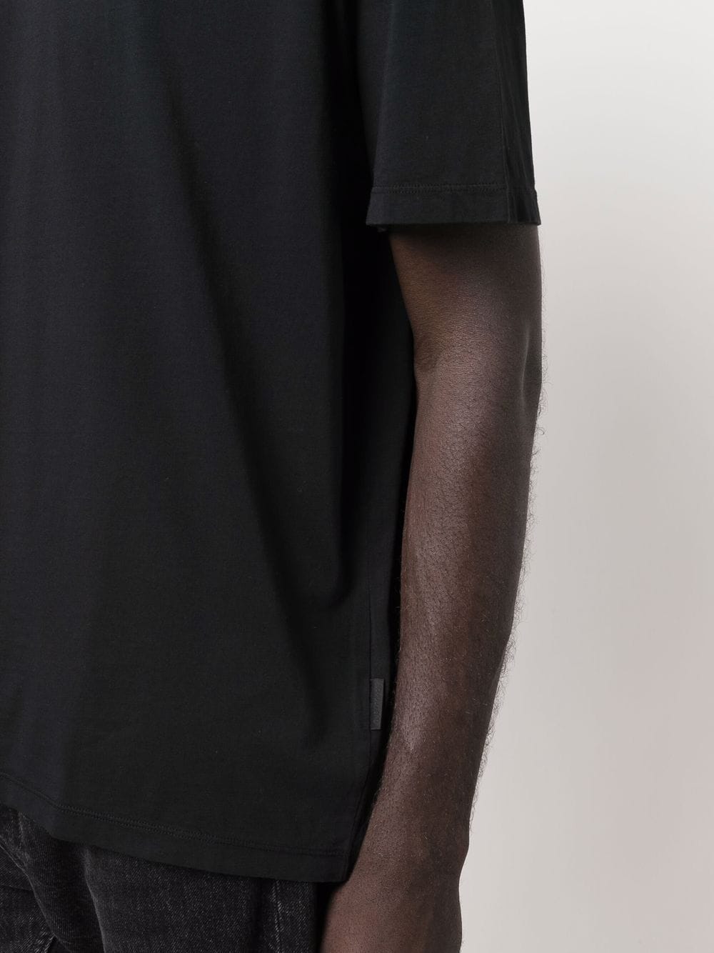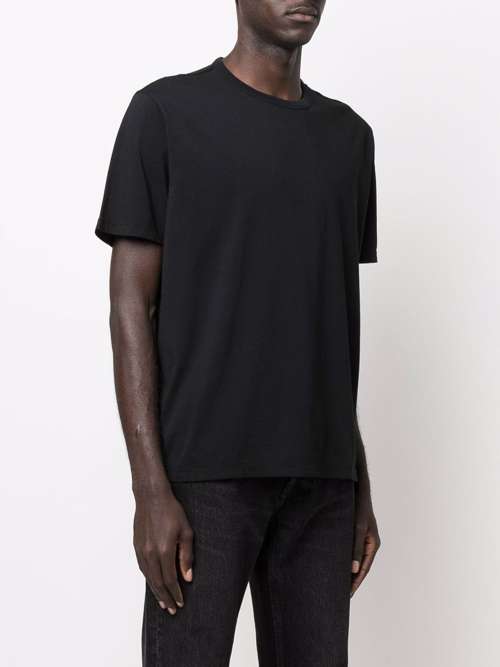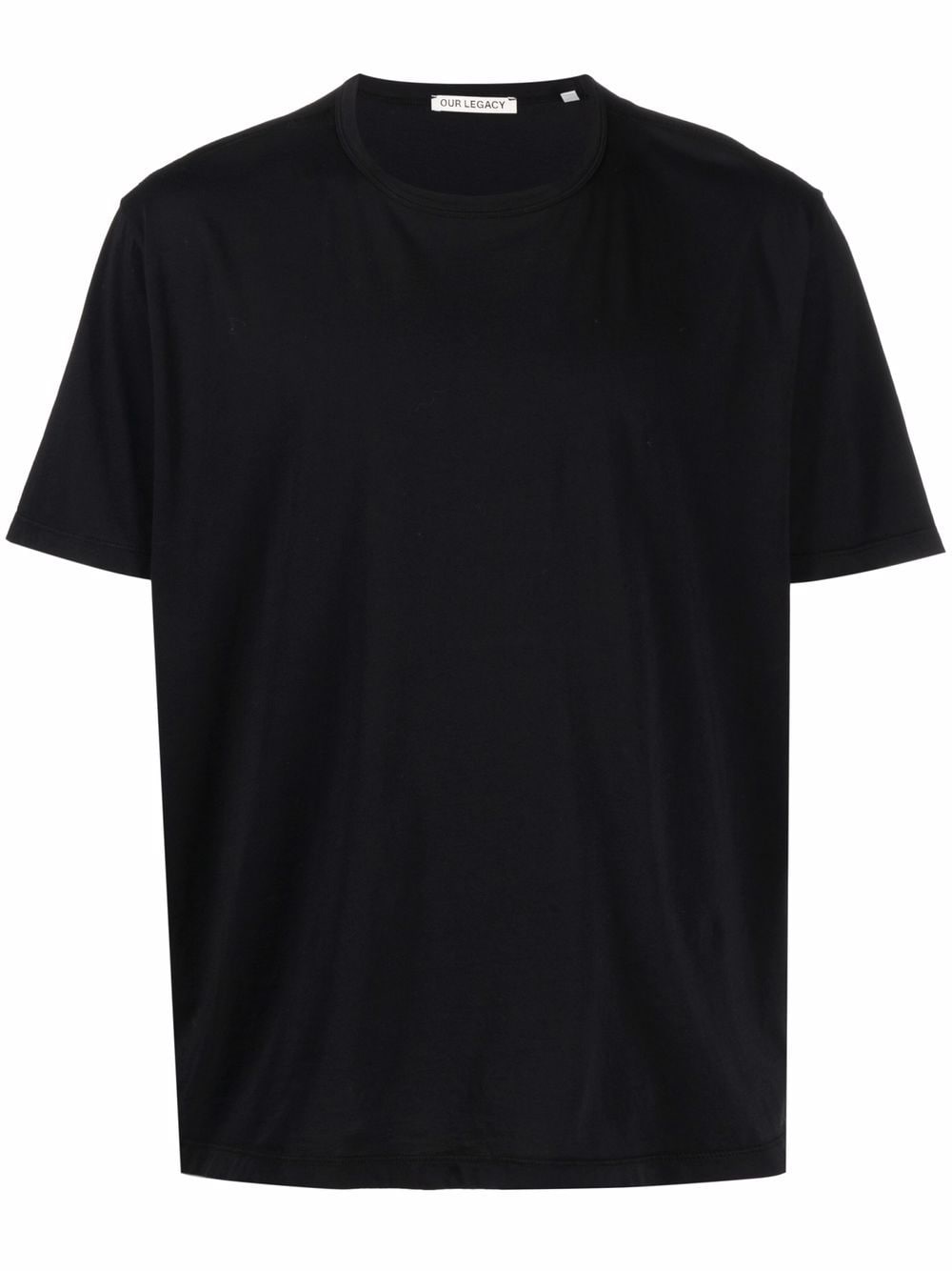 T-shirt a collo rotondo di cotone nero dalla nostra eredità con collo tondo, maniche corte e orlo dritto.