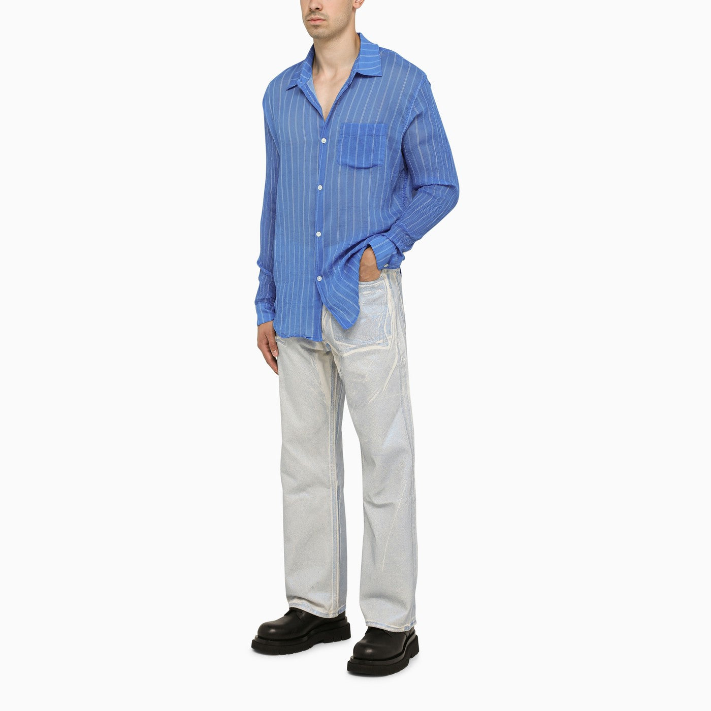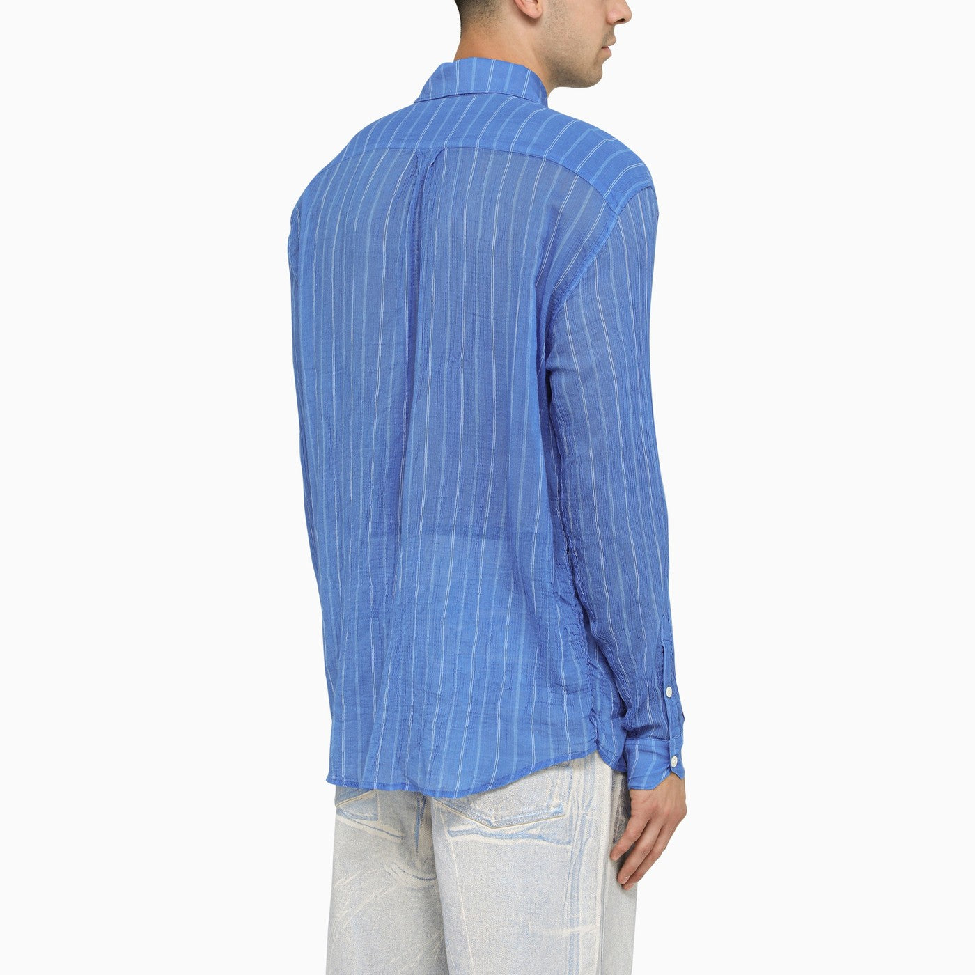 Camicia casual in padella blu in miscela di cotone dalla nostra eredità con maniche lunghe, bottoni madre di pearl e tasca del torace. Il modello fa parte della collezione Splash.