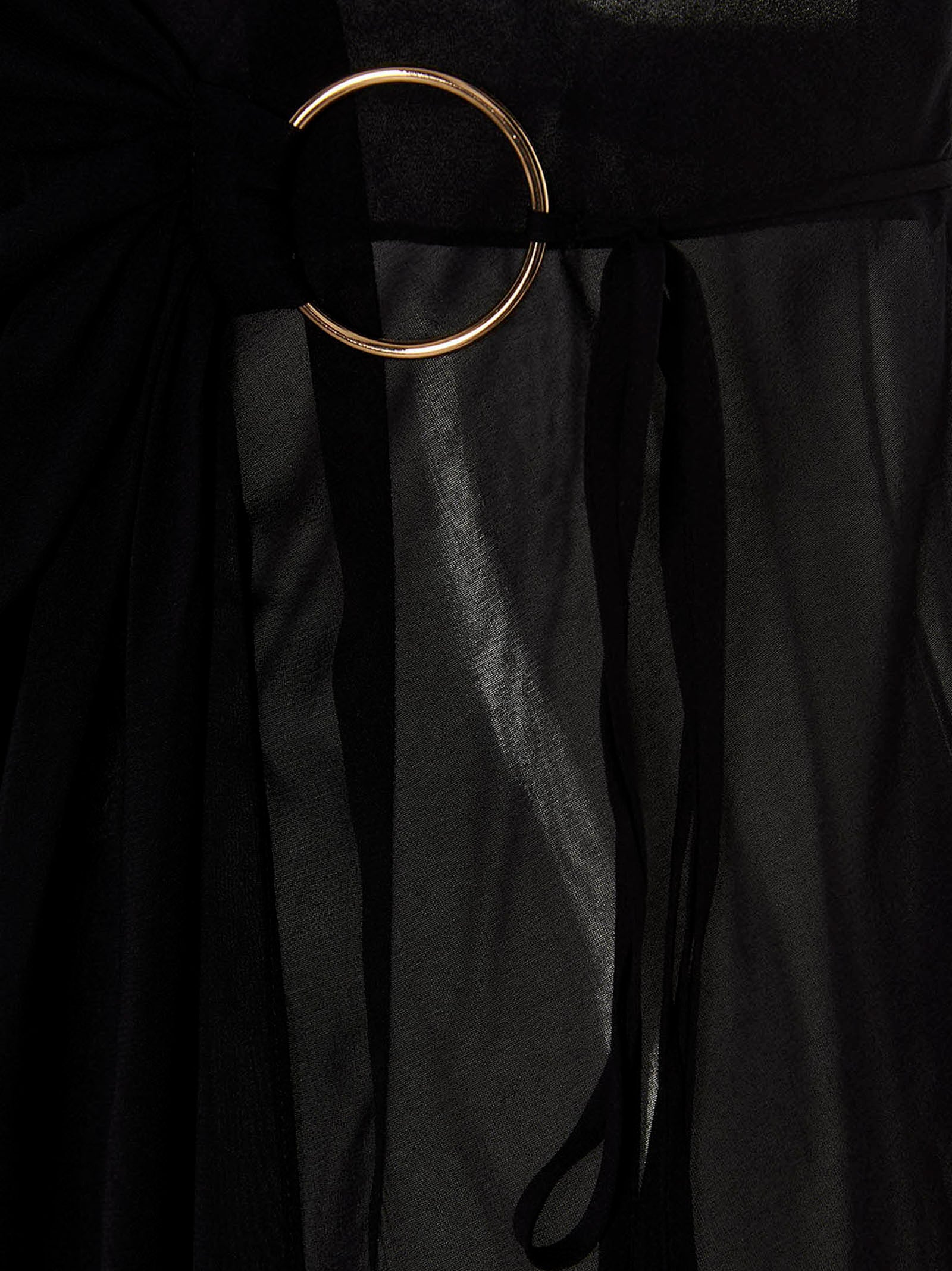 Abito avvolgente per miscela di seta "King Tide" con una scollatura, allacciatura laterale e un anello di metallo in vita.