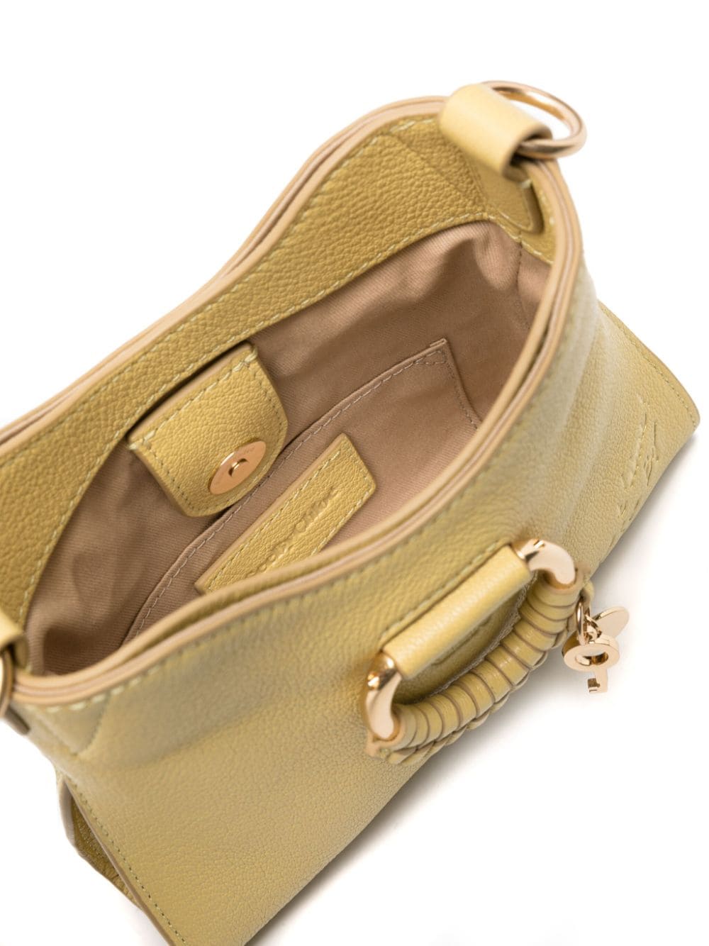 Avocado Green Goatskin texture a grana con texture debossato logo sull'hardware anello anteriore dettaglio dettaglio dettaglio di fissaggio magnetico nascosto manico più trapuntato con tracolla staccabile scomparto vano cotone cotone cotone hardware tono in oro
