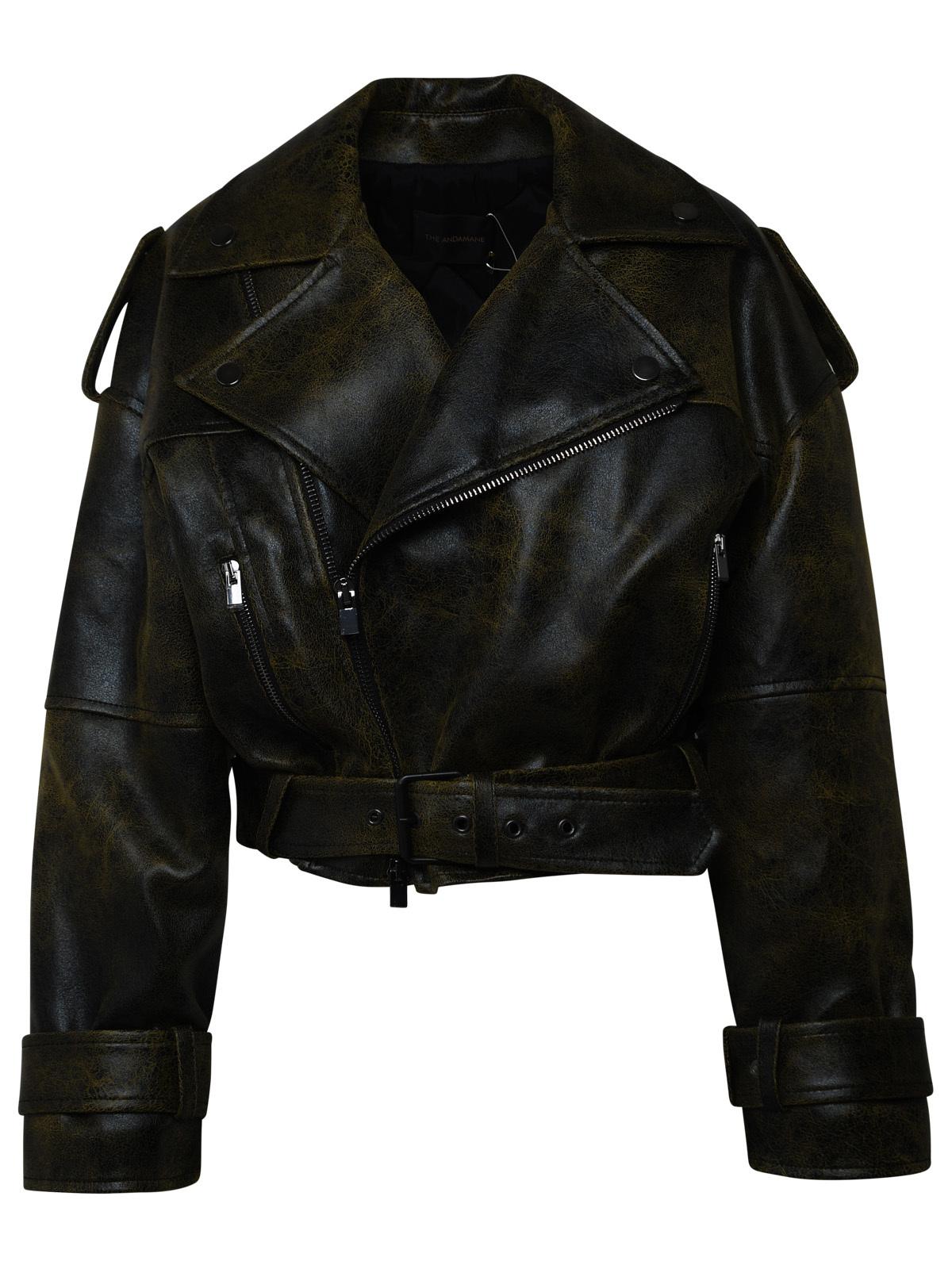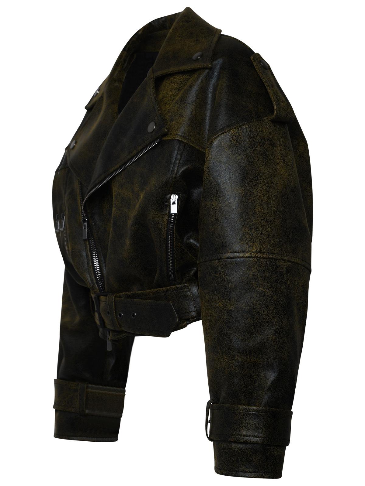 Giacca ritagliata con vestito di grandi dimensioni, colletto di la riseggio a bottone, tasche con zip sul davanti, fibbia e polsini a bottone, cintura fissa regolabile, chiusura a zip anteriore