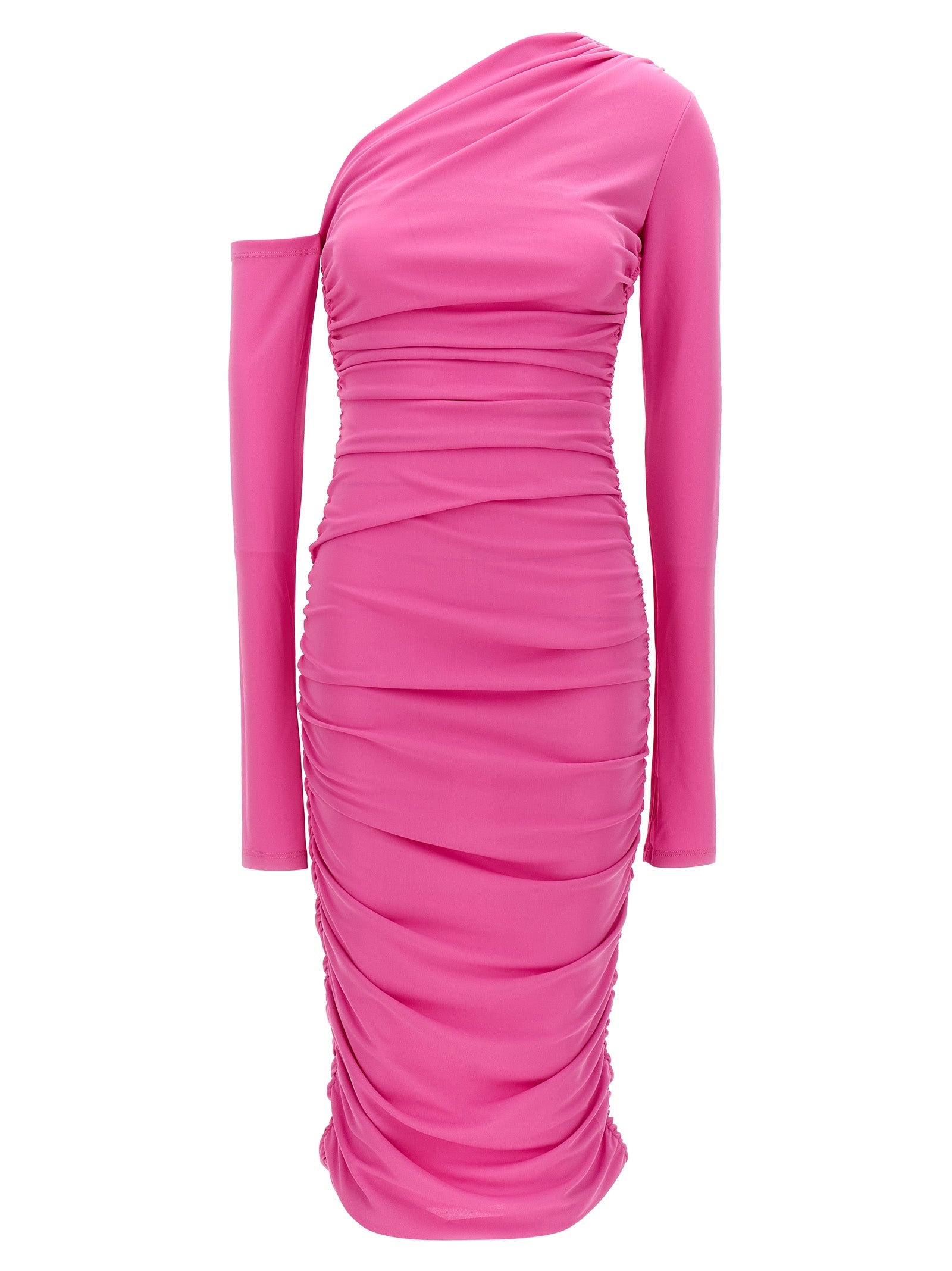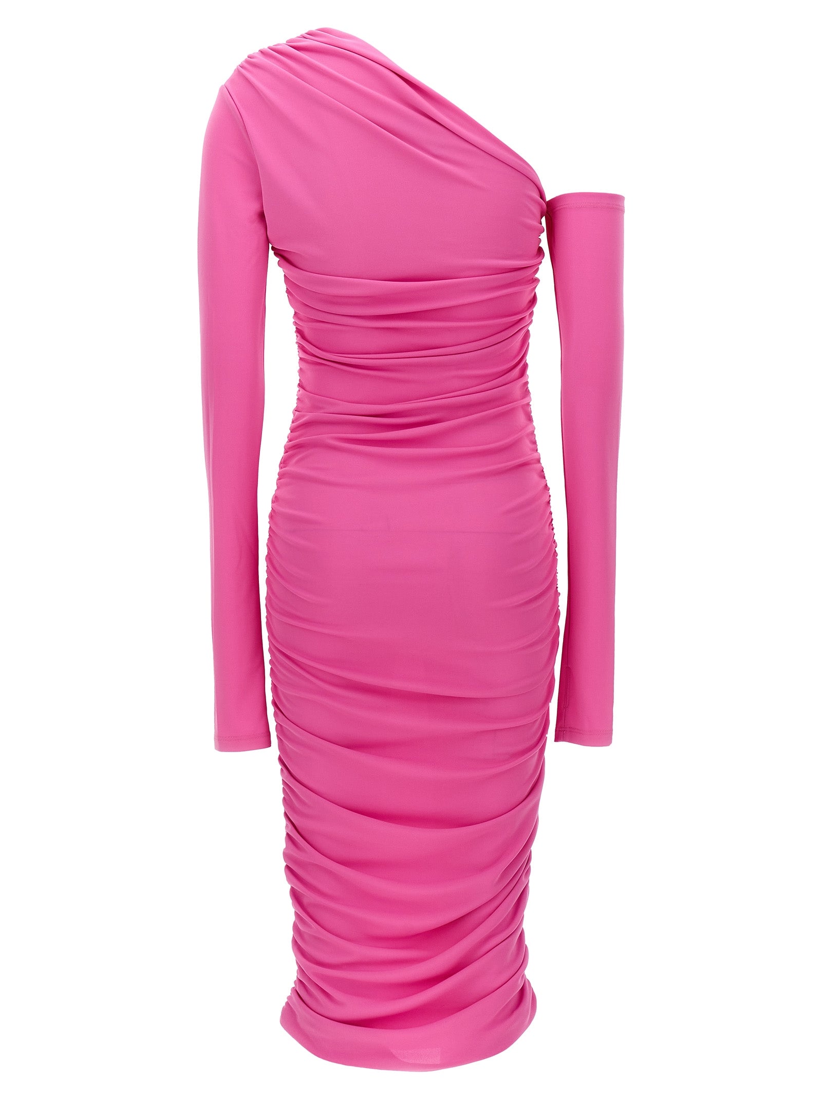Abito midi "Olimia" in tessuto tratto drappeggiato con maniche asimmetriche e ritagliato sulla spalla.