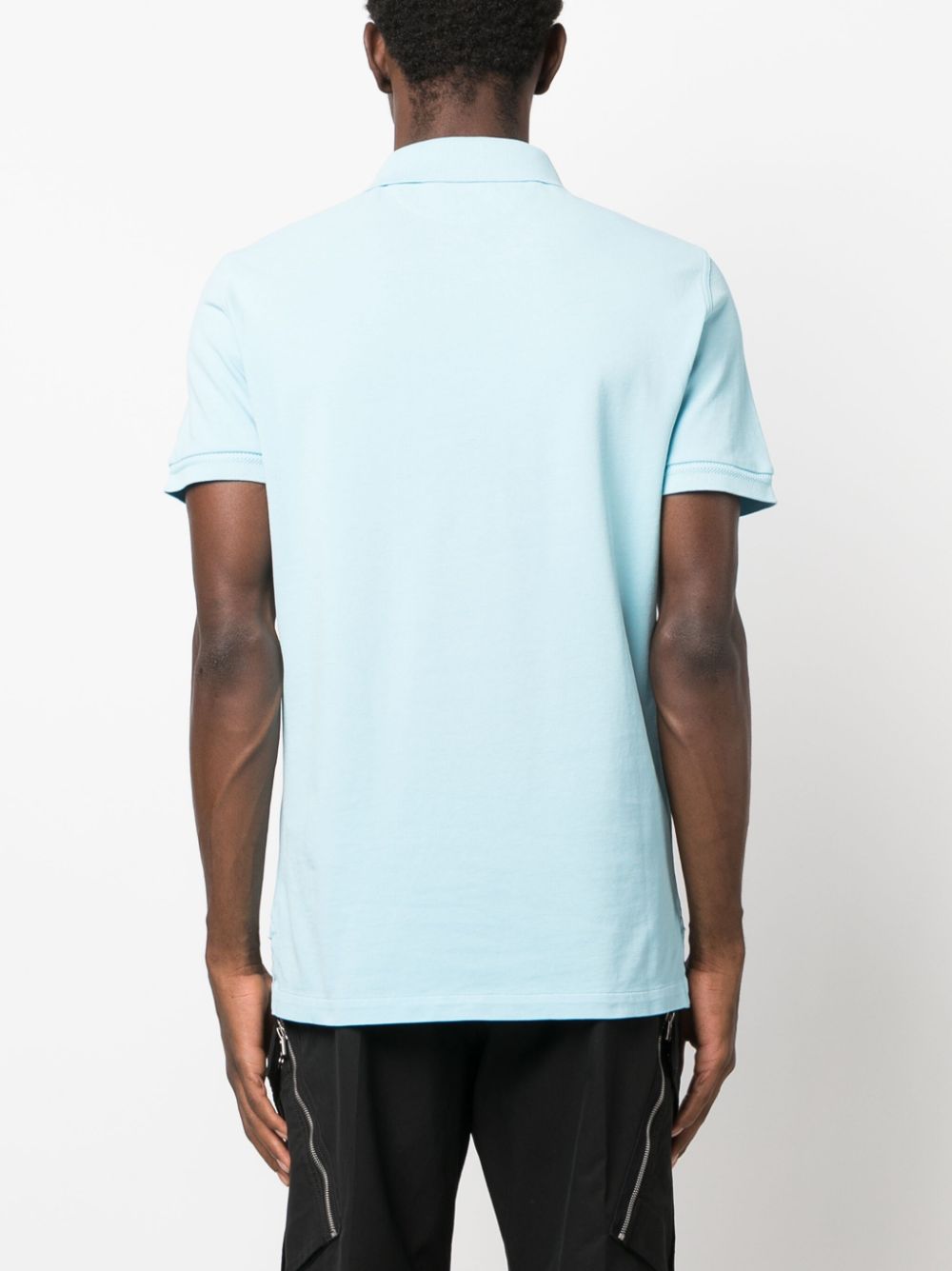 short-sleeve polo shirt from TOM FORD featuring sky blue, cotton, polo collar, front button placket and short sleeves.