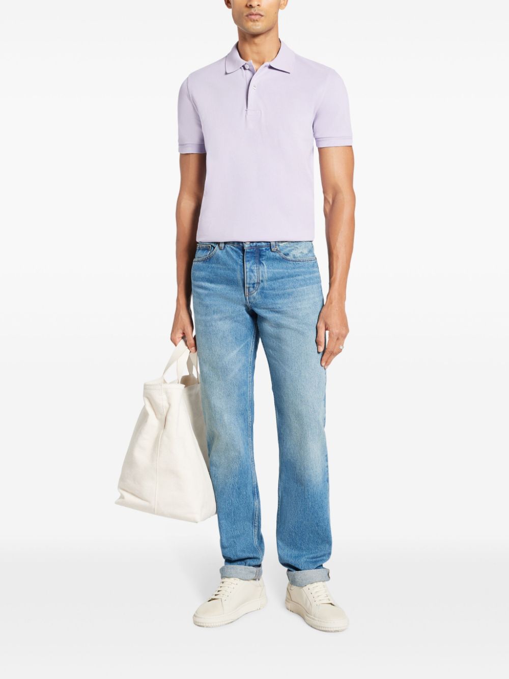 short-sleeve polo shirt from TOM FORD featuring lilac, cotton, polo collar, front button placket and short sleeves.