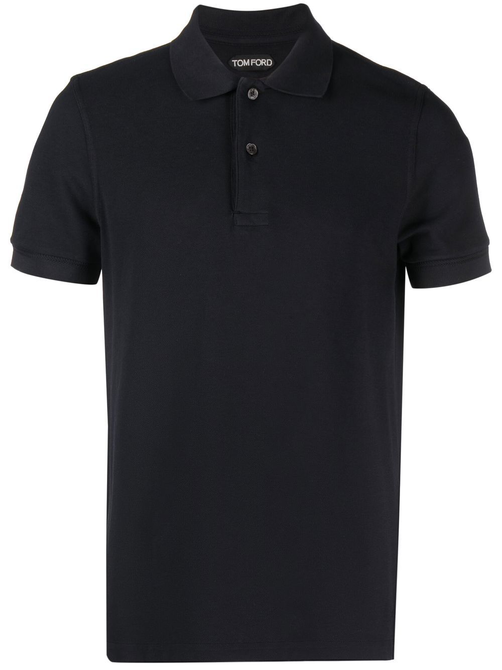 short-sleeve polo shirt from TOM FORD featuring blue, cotton, polo collar, front button placket and short sleeves.