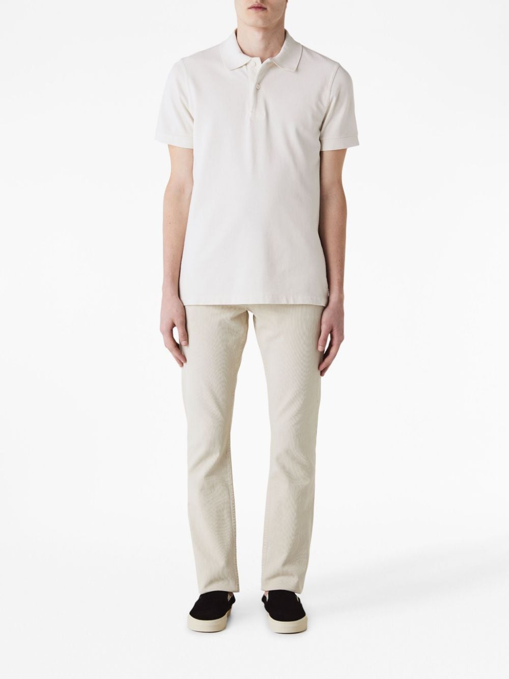 short-sleeve polo shirt from TOM FORD featuring white, cotton, polo collar, front button placket and short sleeves.