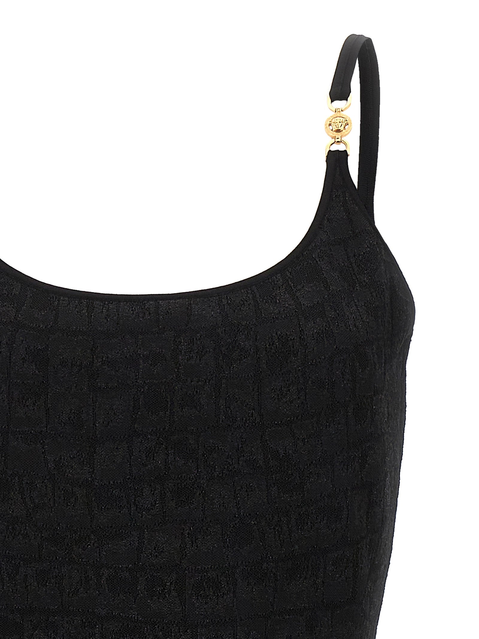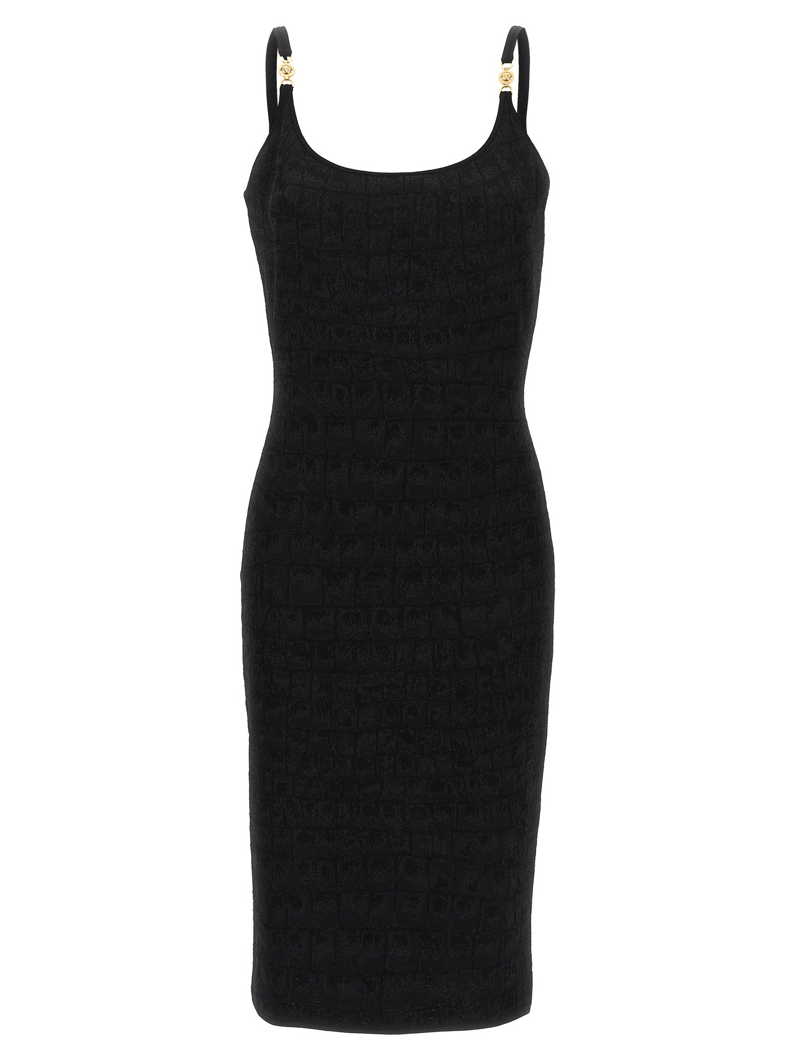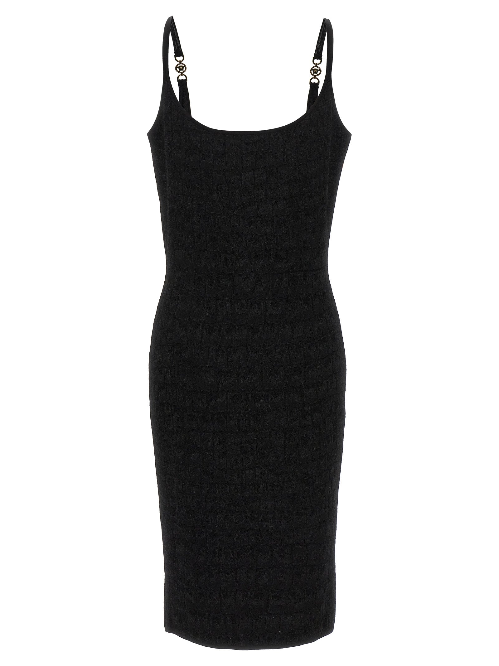 Abito viscoso "coccodrillo" con motivo di devorè di coccodrillo vellutato, modello di cinturino sottile con logo in metallo.
