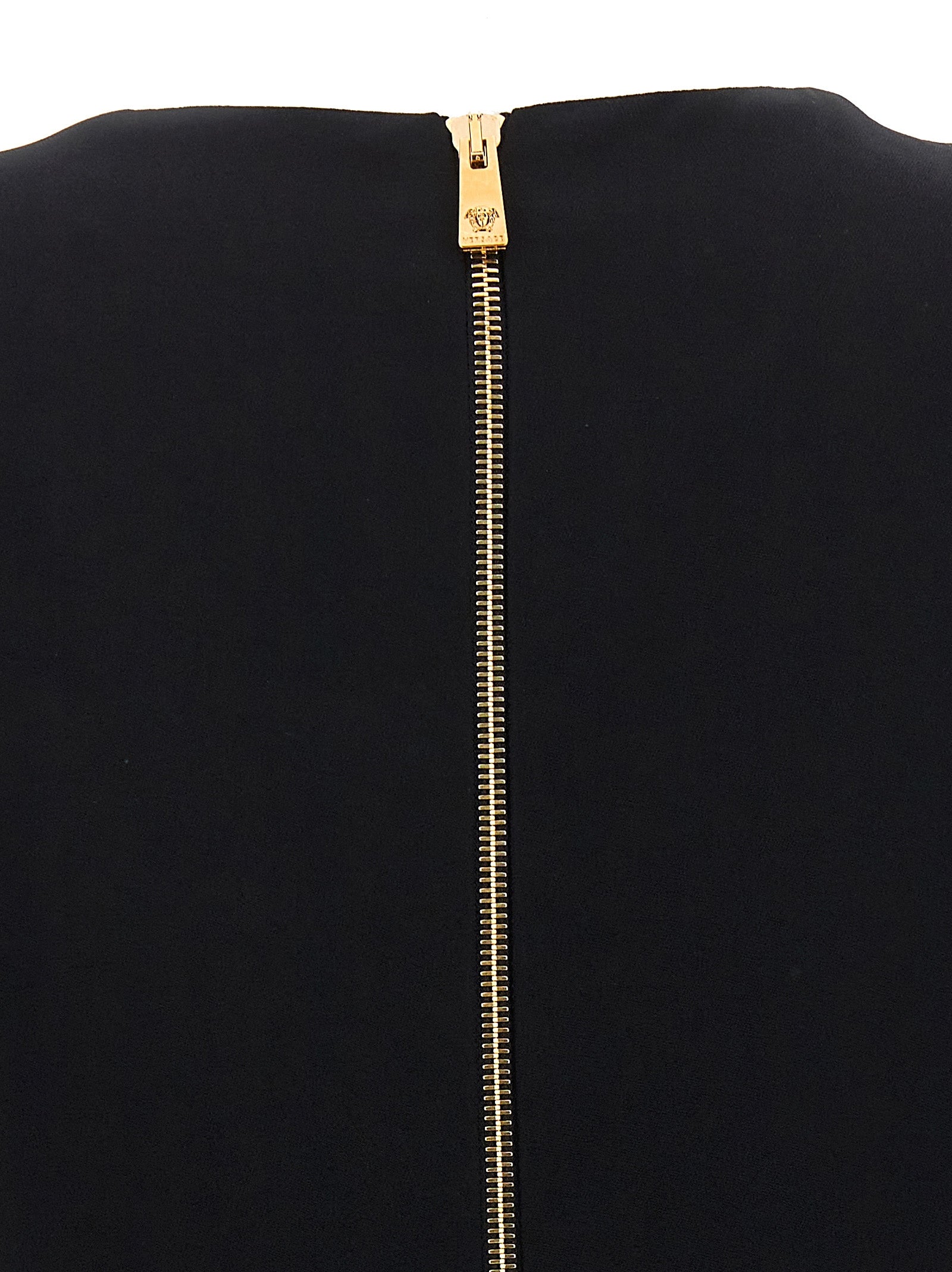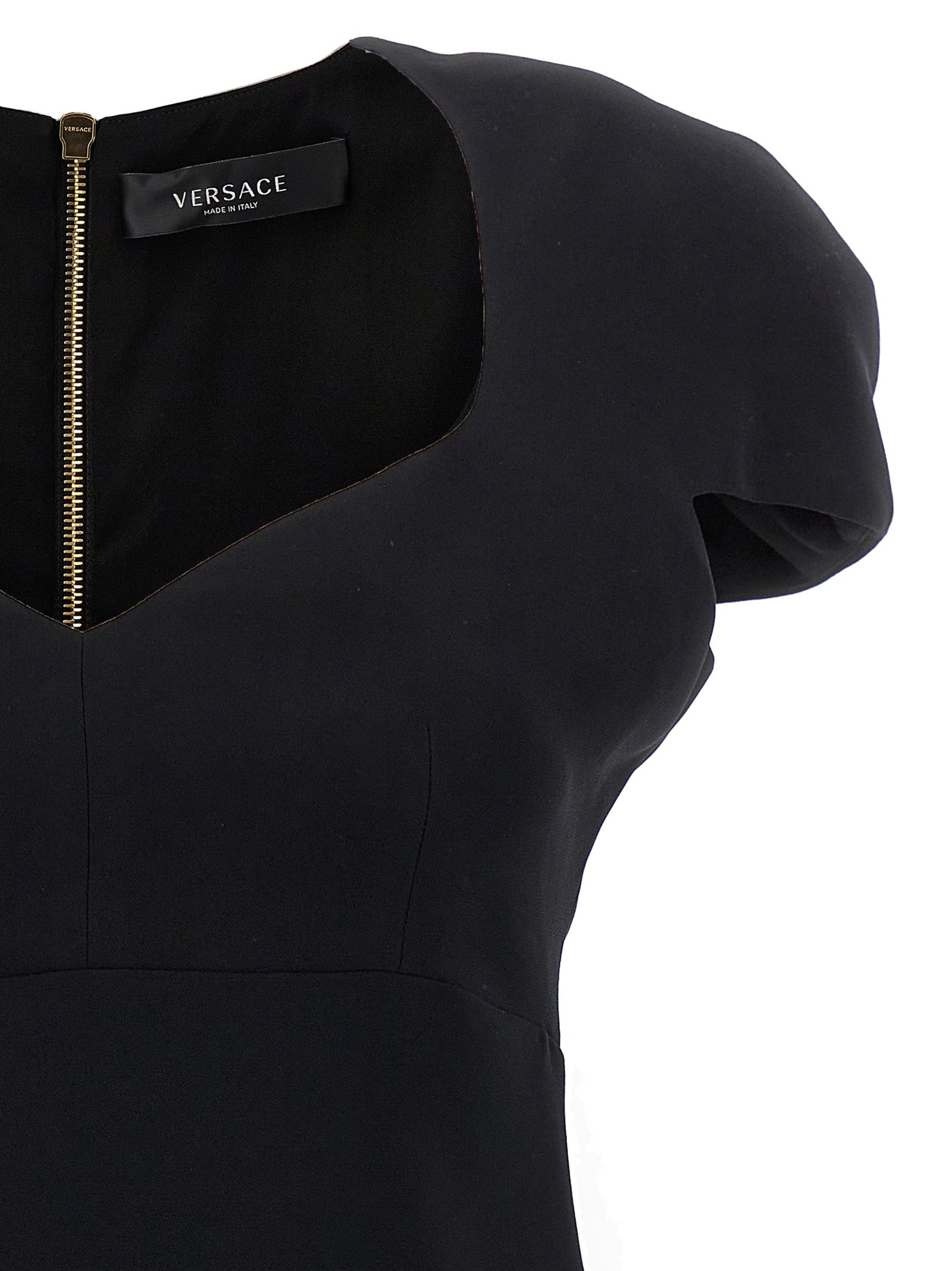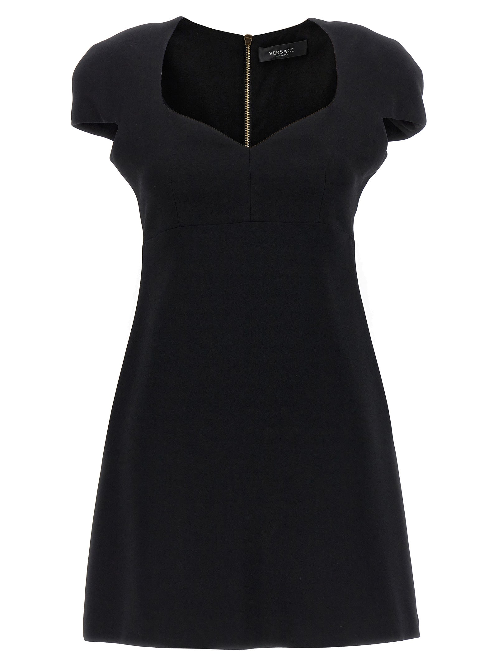 Allungo vestito da trapezio viscoso con scollo a forma di cuore, maniche a pattina corta e una chiusura a zip posteriore.