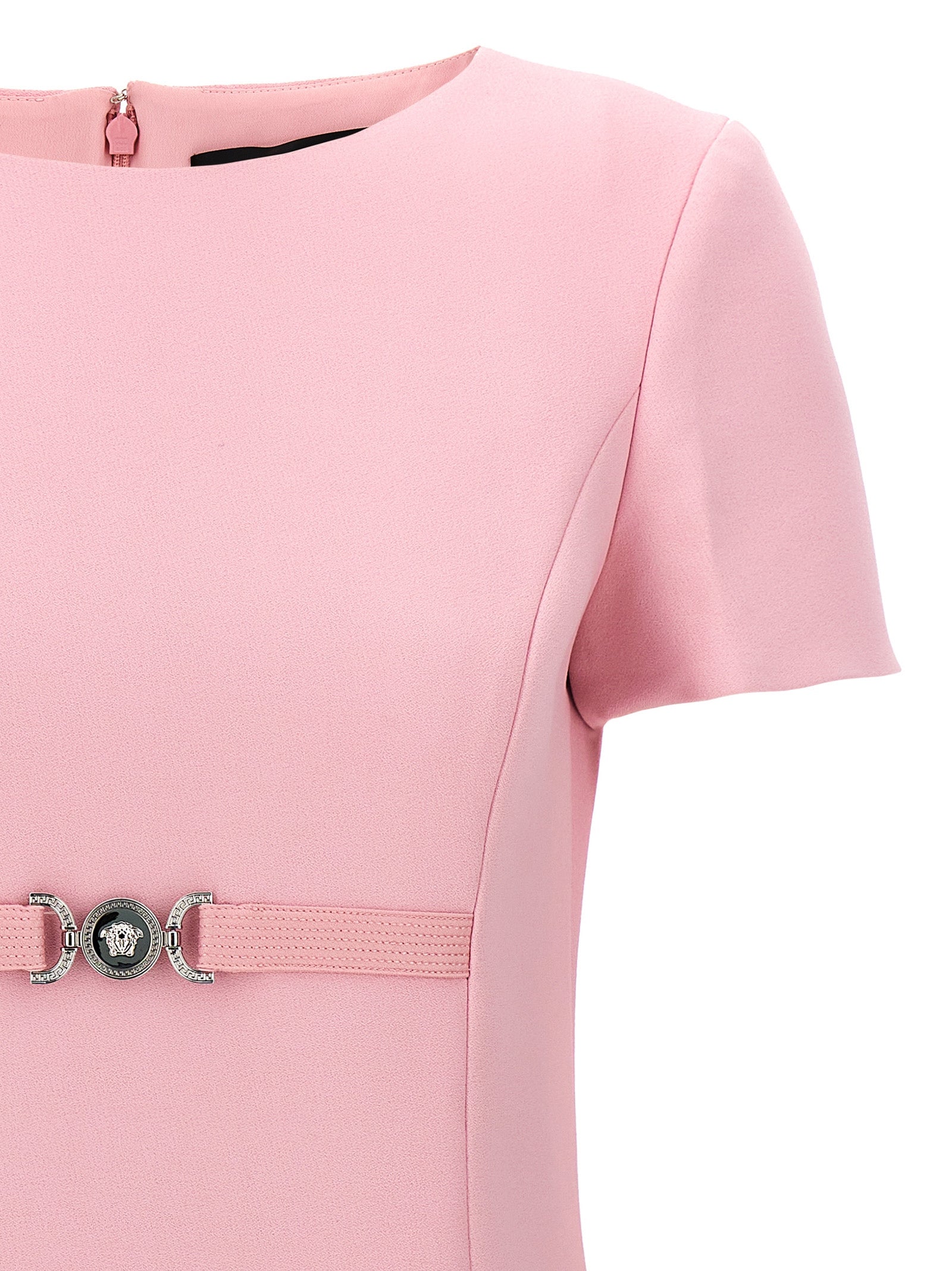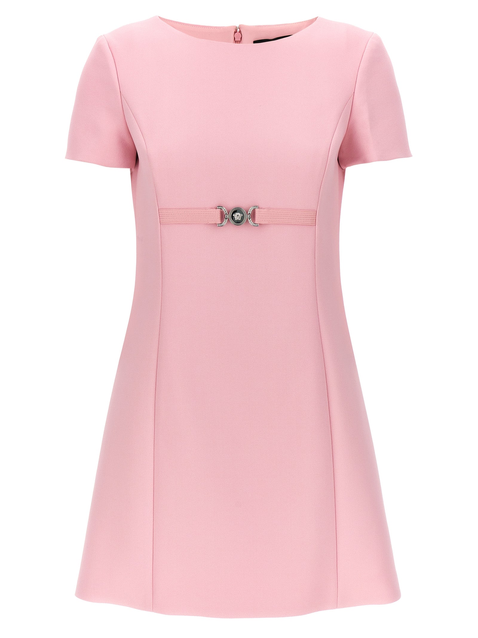 Allungo il minidress per viscosi con maniche corte e cinturino in vita del logo Medusa.