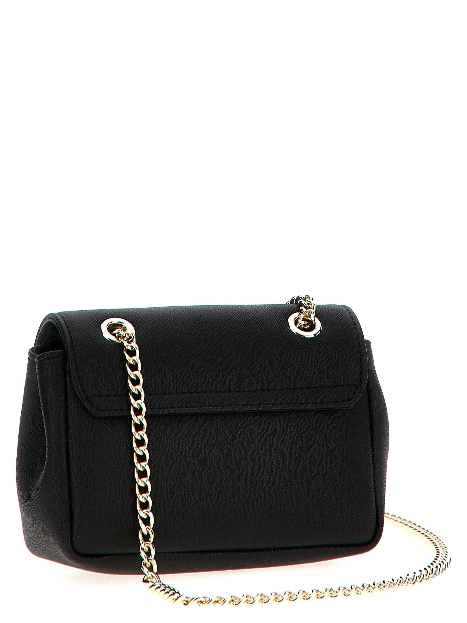 Borsa a traversa "piccola catena di borse" in tessuto a effetto saffiano con logo della sfera anteriore, chiusura del lembo magnetico, tracolla a catena scorrevole, dettagli in metallo oro.