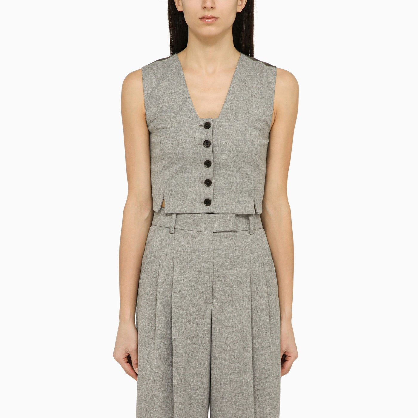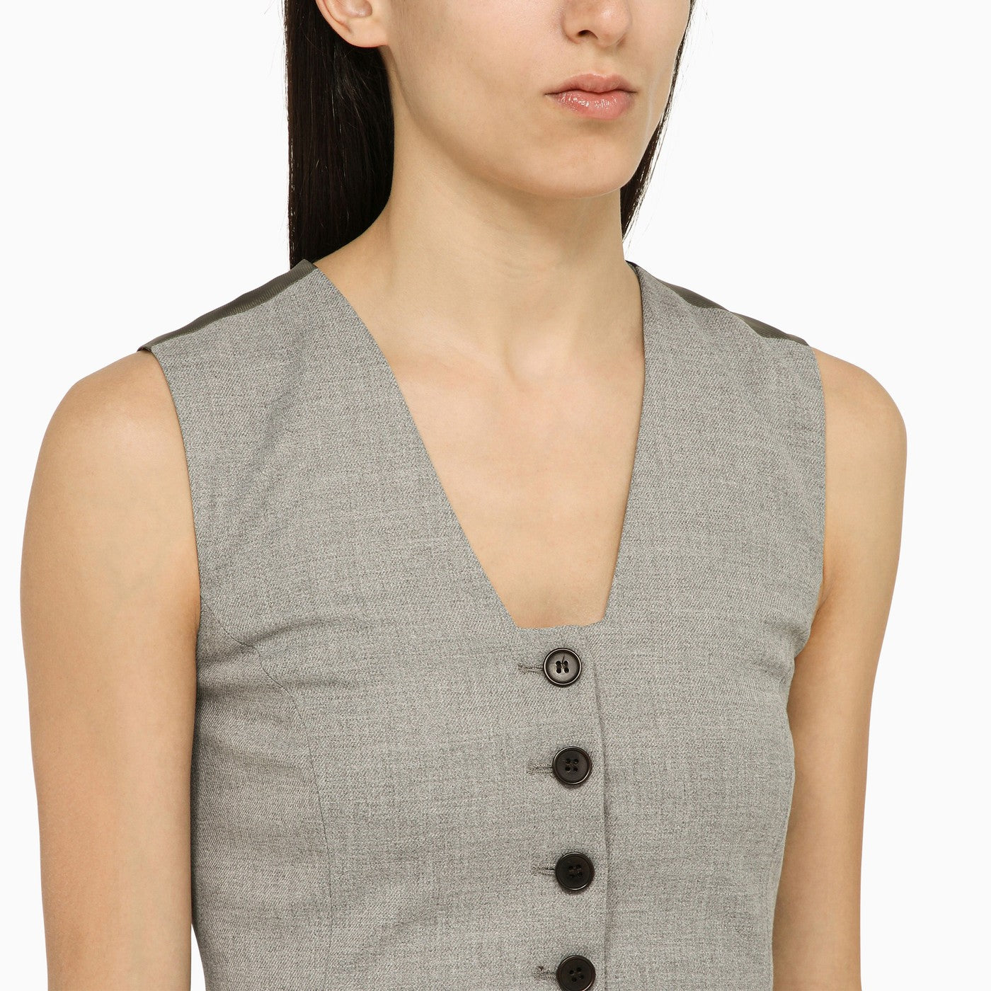 Grey Gilet di Malene Birger con un design su misura, scollatura angolare, piaclicazione del pulsante anteriore e vestito di slim.