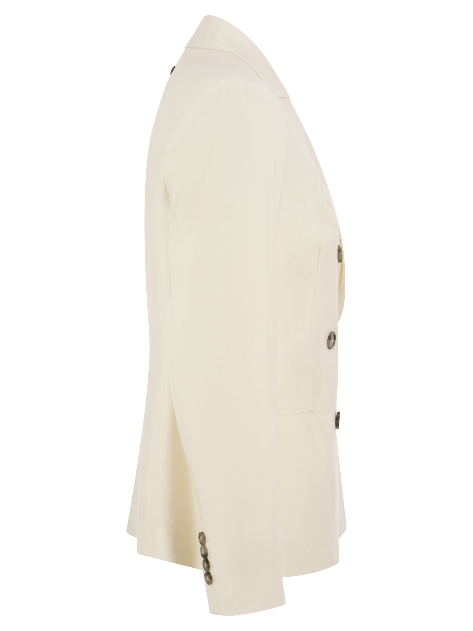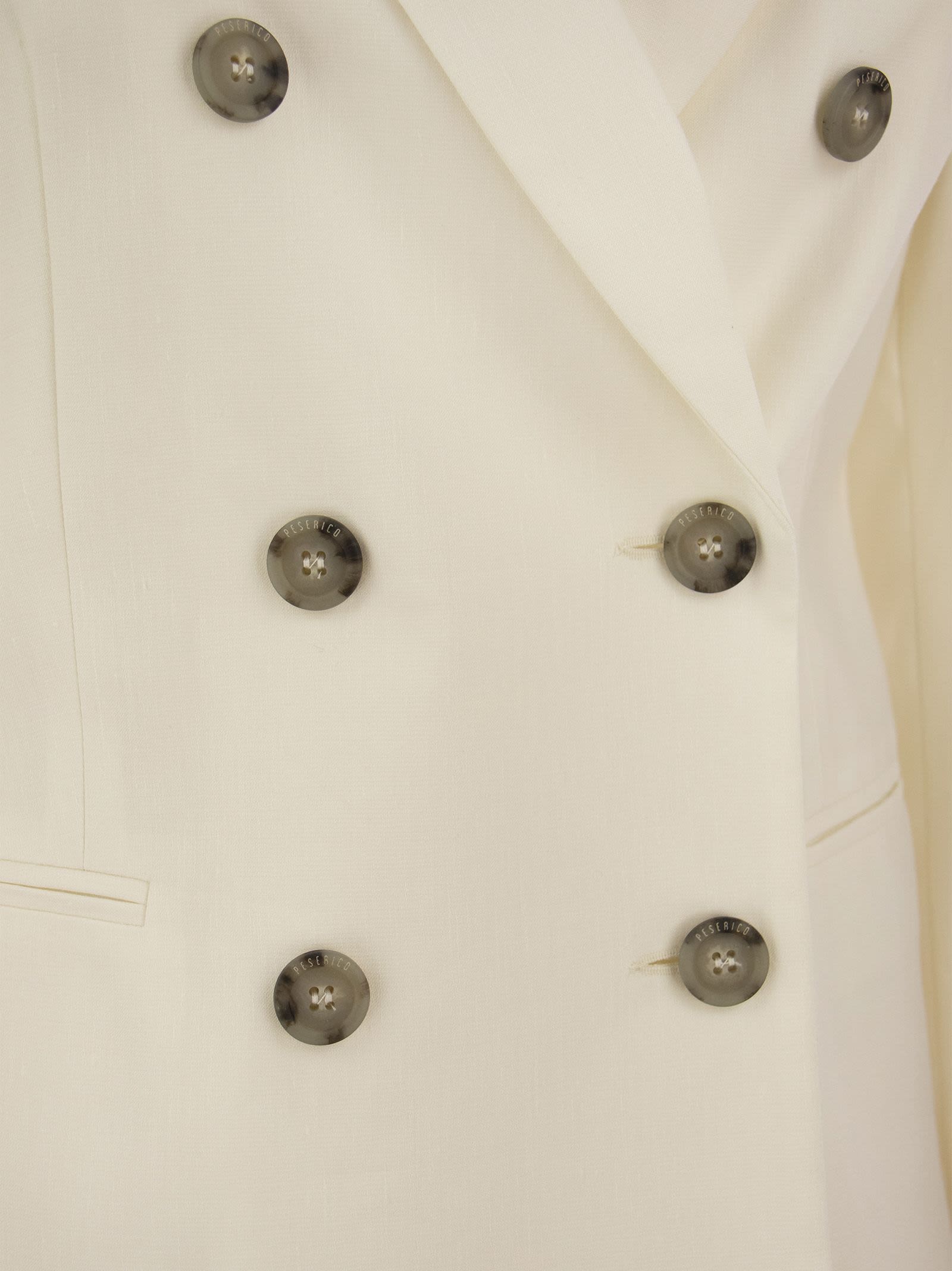 Questo blazer di Peserico è un classico modello a doppio petto con adattamento boxy e maniche molto femminili. È realizzato in tessuto "estratto" con lana di lino, una tecnica di torsione in filo brevettata che fornisce elasticità (senza l'uso di elastomero) e la non allergenicità. - Chiusura frontale a sei tiri - tasche a doppio welt - fit a secco - foderato - maniche lunghe con bottoni ID progettista: S01901 05814 902