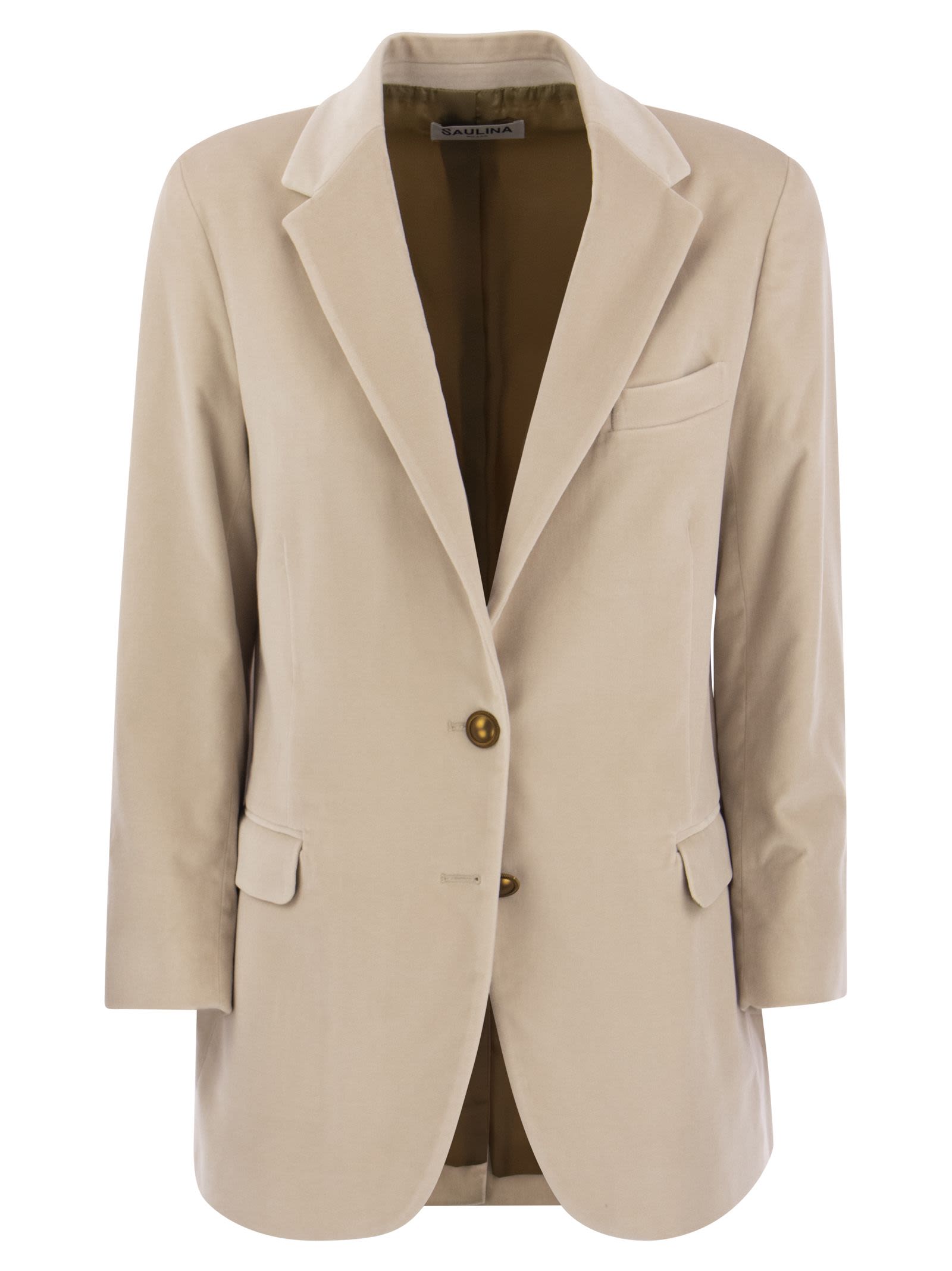 Saulina è uno storico marchio italiano, sinonimo di qualità e creatività. Giacca a petto singolo di velluto caratterizzata da una vestibilità sciolta. - Giacca a petto singolo con 2 bottoni - Linea morbida - multipocket - ID interior designer semi -foderato: SAA016 1