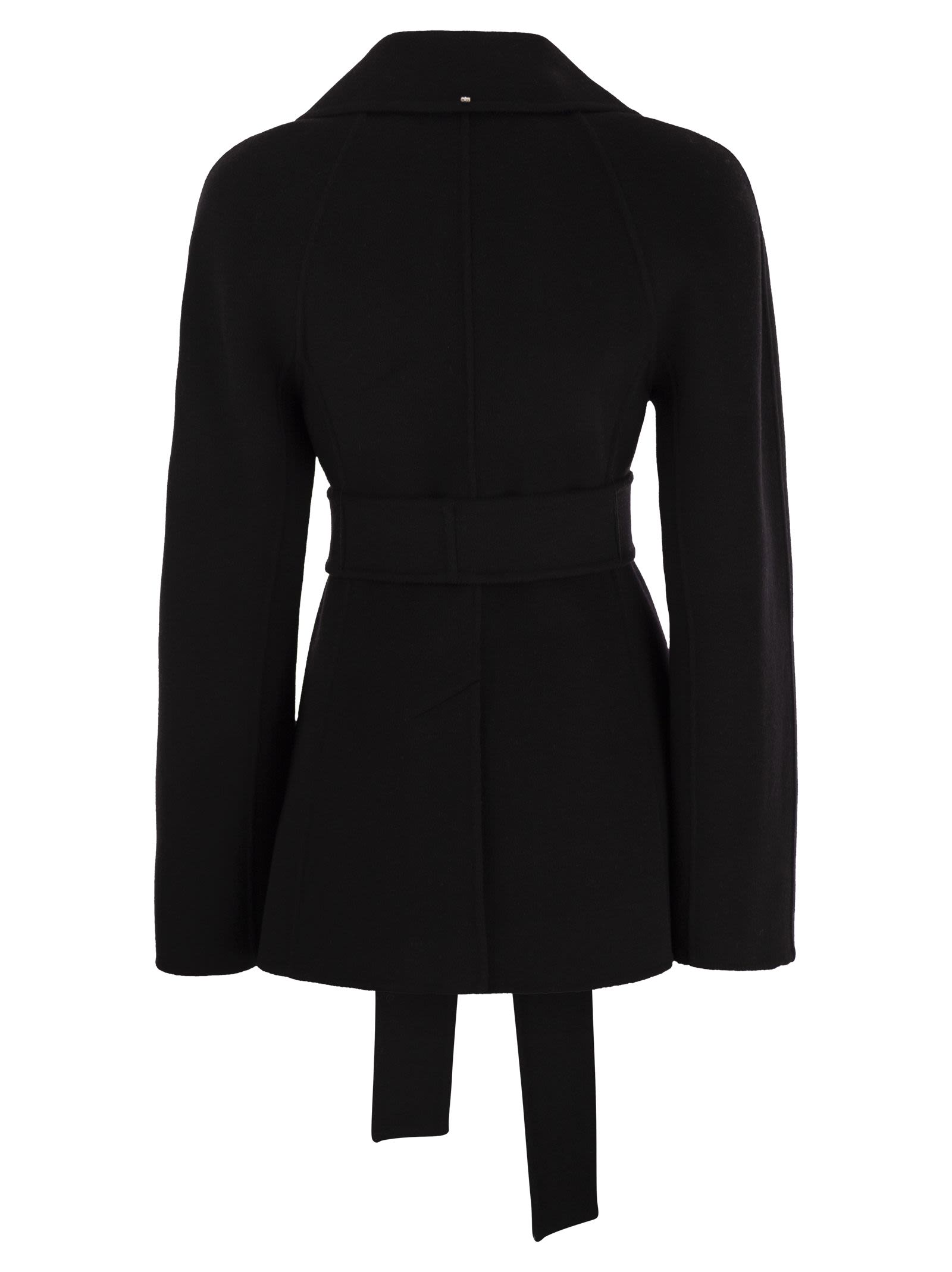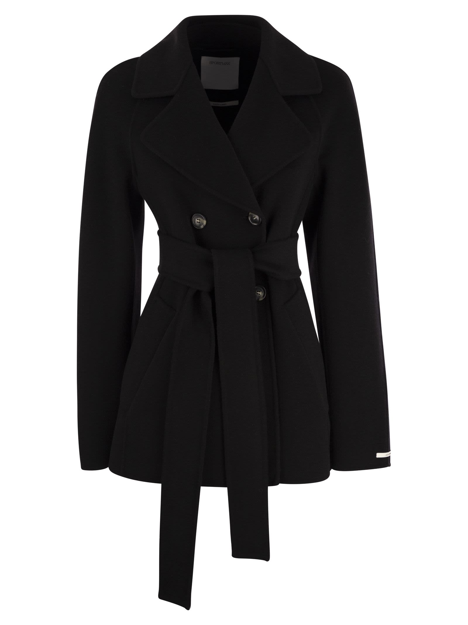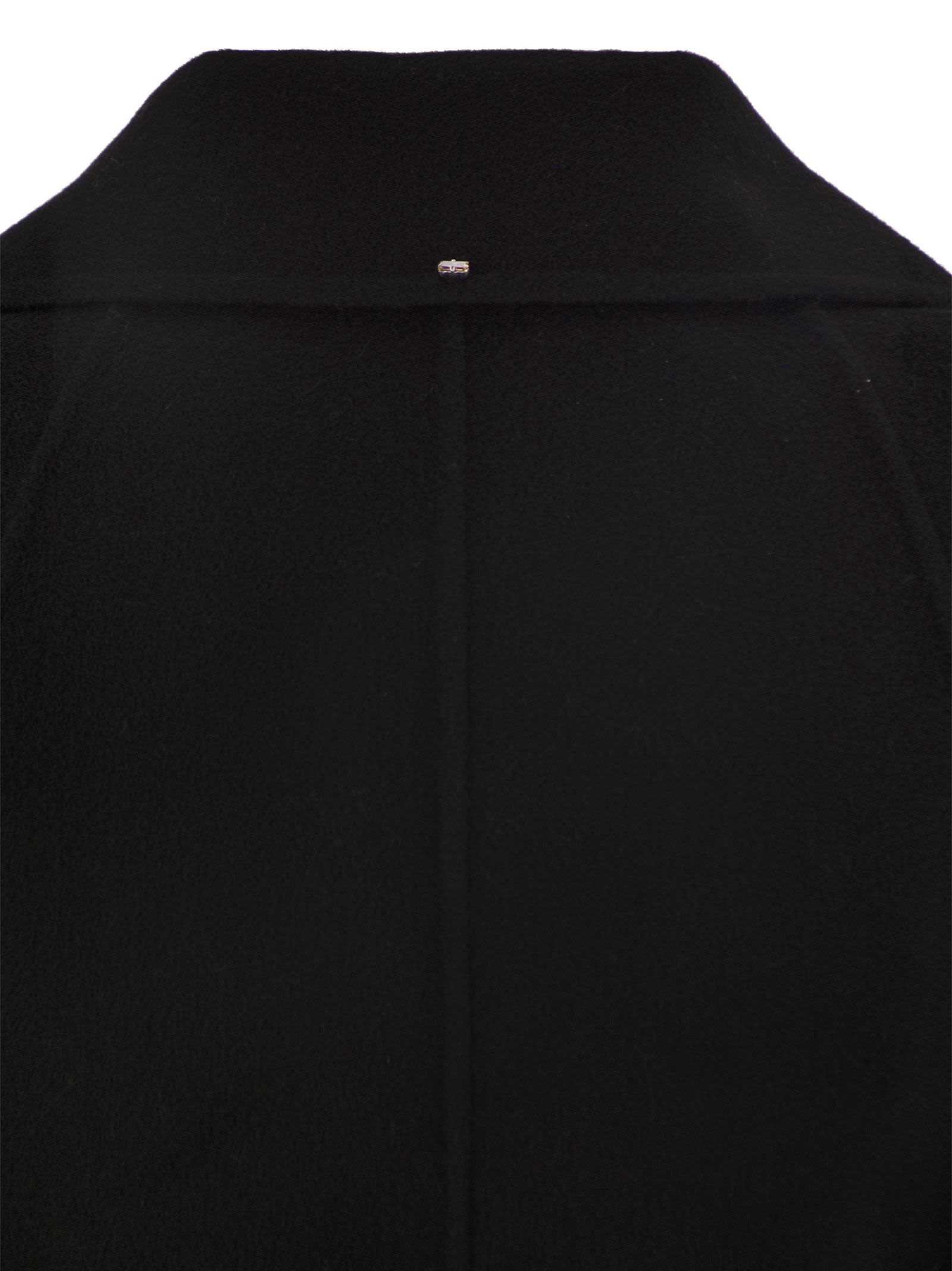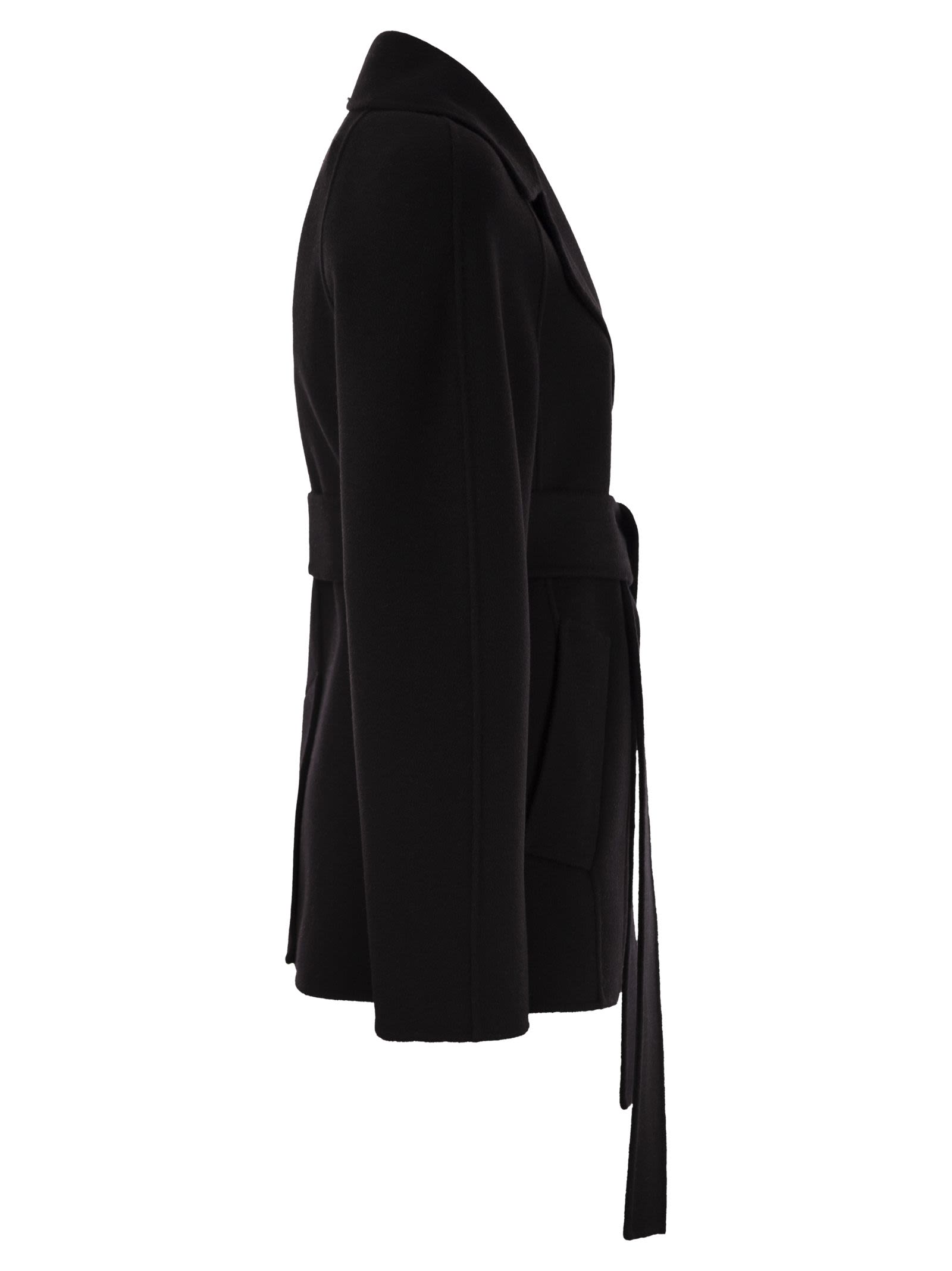 Cappotto corto con costruzione di abito da venatura, fissaggio a doppio petto e bottoni anteriori. Realizzato in doppio lana e cashmere drap, offre calore e morbidezza. Il modello presenta una scollatura ampia con risvolto, maniche definite da un taglio raglan e una cintura che può essere legata in vita per un adattamento che può essere modulato come desiderato. Il capo è completato per tasche laterali con Maxi Welt. - Collar venerato - Cintura di abbinamento - ID progettista regolare: 2412081021600 004