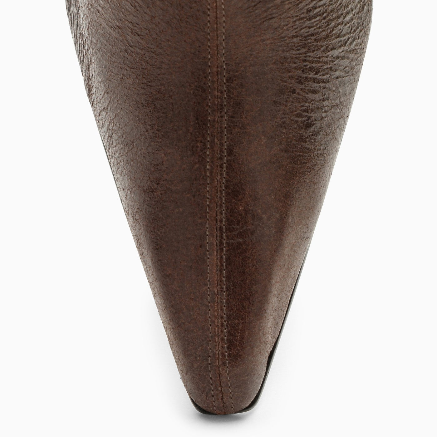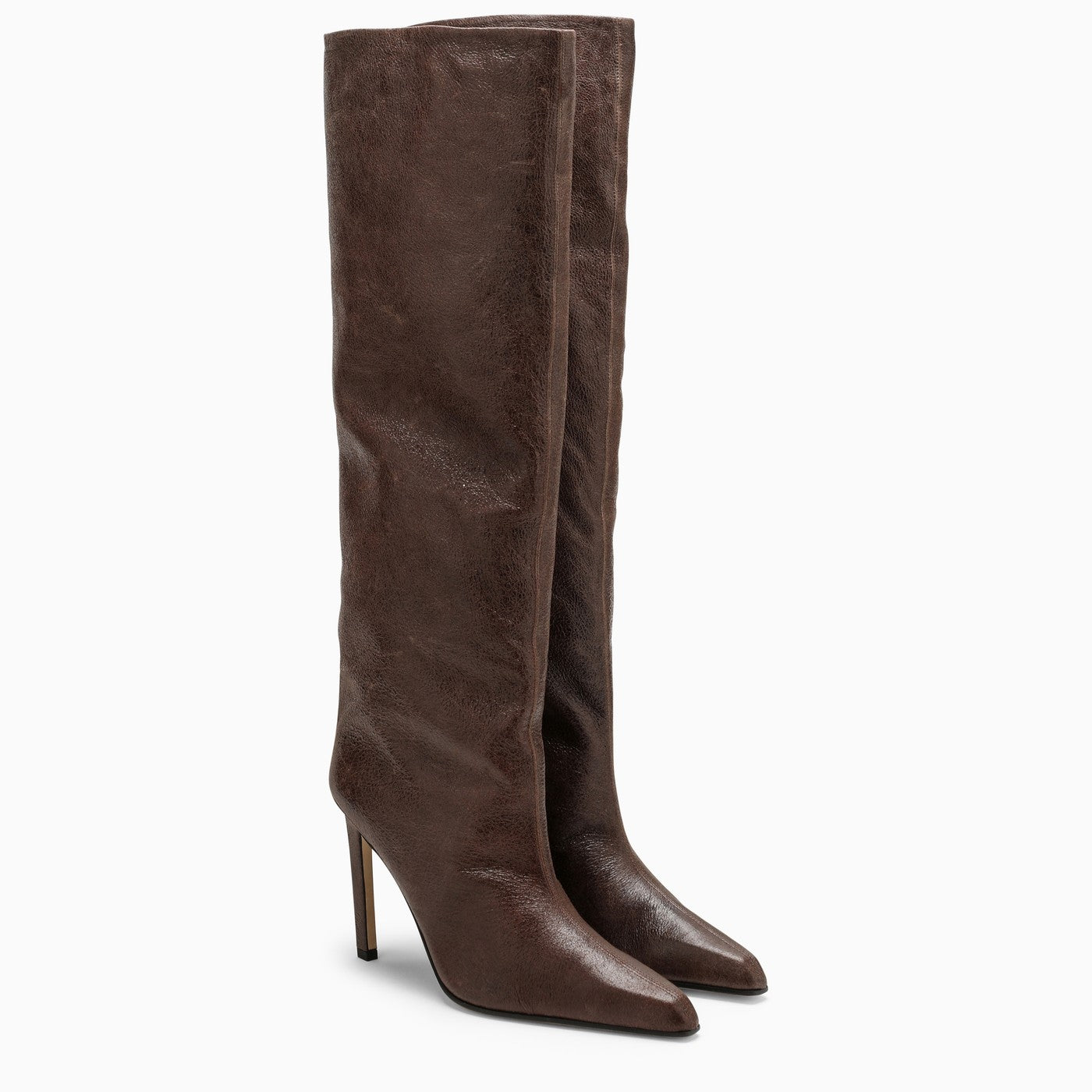 Stivale alto di Paris Texas in pelle marrone dall'effetto sfumato, caratterizzato da un design a punta, gambale rigido e suola in cuoio.