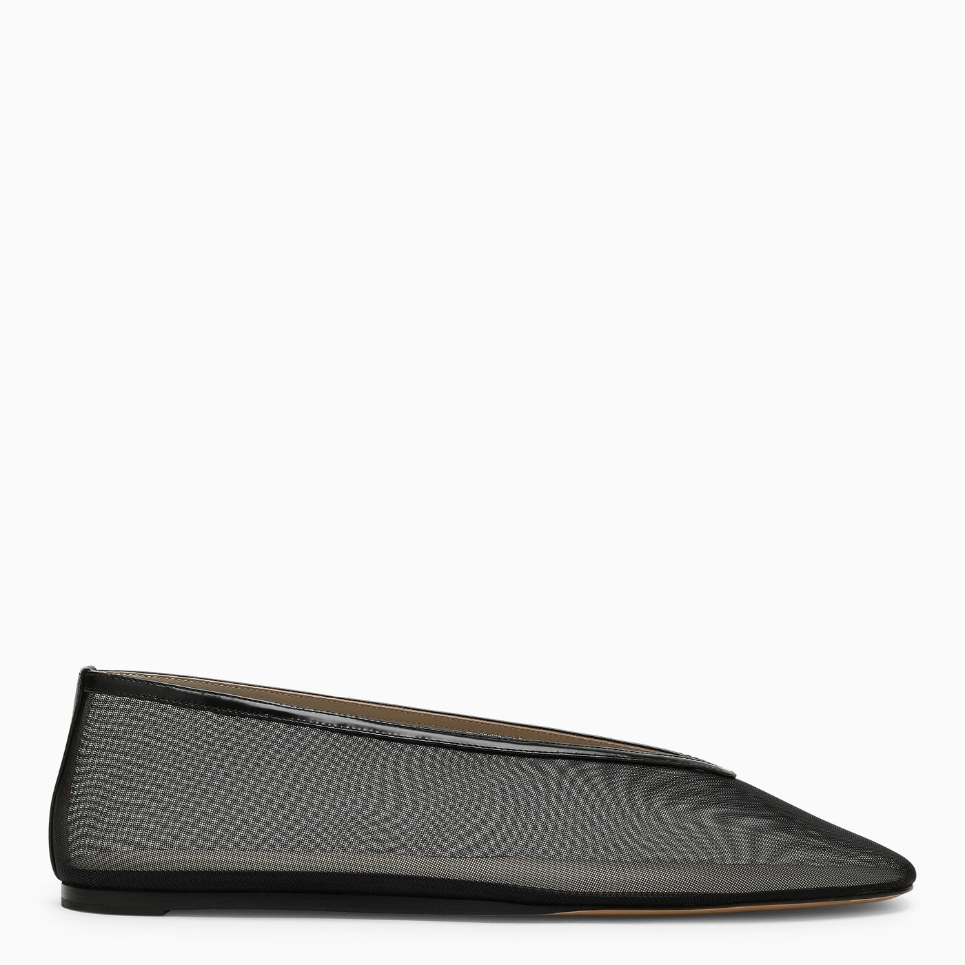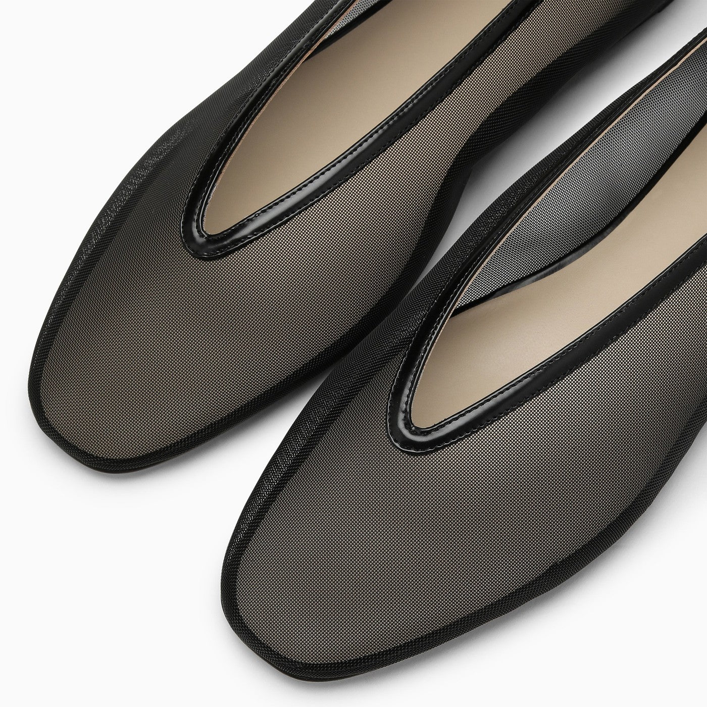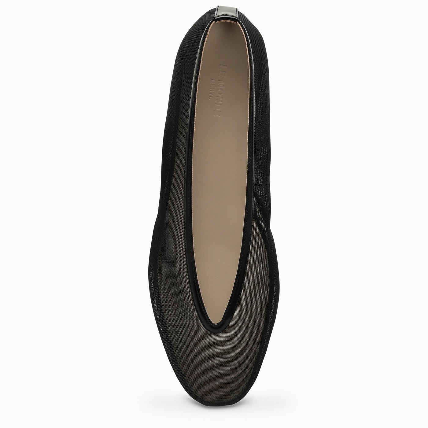Black Mesh Ballerina di Le Monde Beryl, con dettagli in pelle, dita quadrata e suola in pelle.