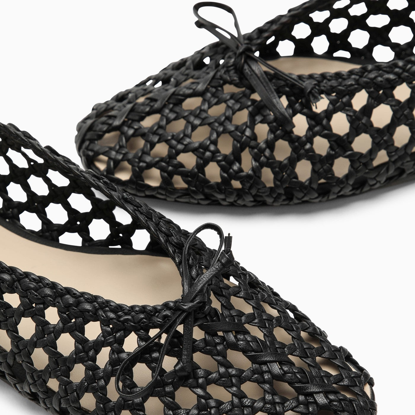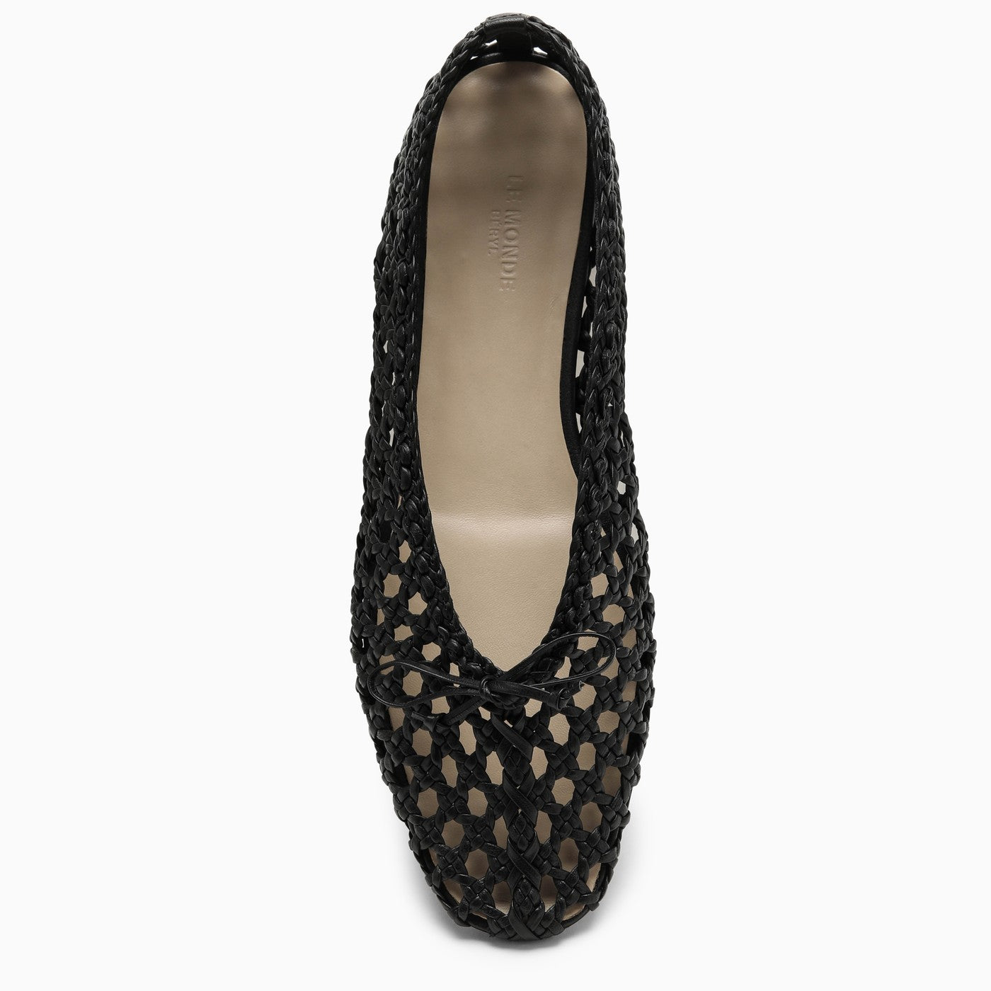 Ballata in pelle intrecciata nera di Le Monde Beryl con un design perforato, un fiocco sulla parte anteriore, una punta rotonda e una suola in pelle.