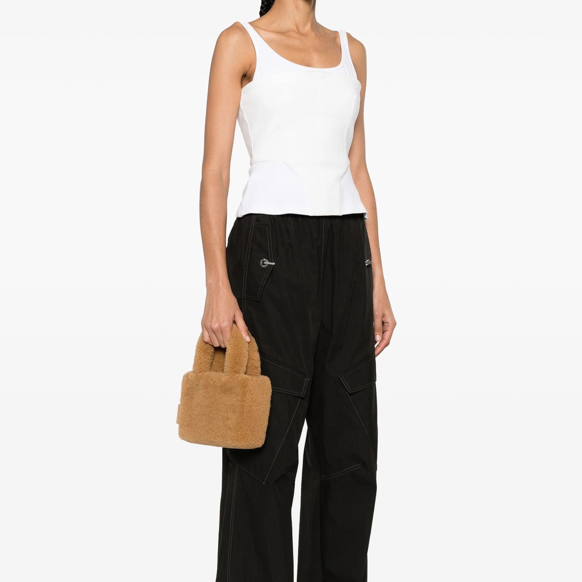 - Composizione: pelle di agnello 100% - Due maniglie superiore - Dettaglio del logo laterale - larghezza 5 cm - spalla rimovibile e regolabile - altezza 13 cm - lunghezza 20 cm - Made in Italia -