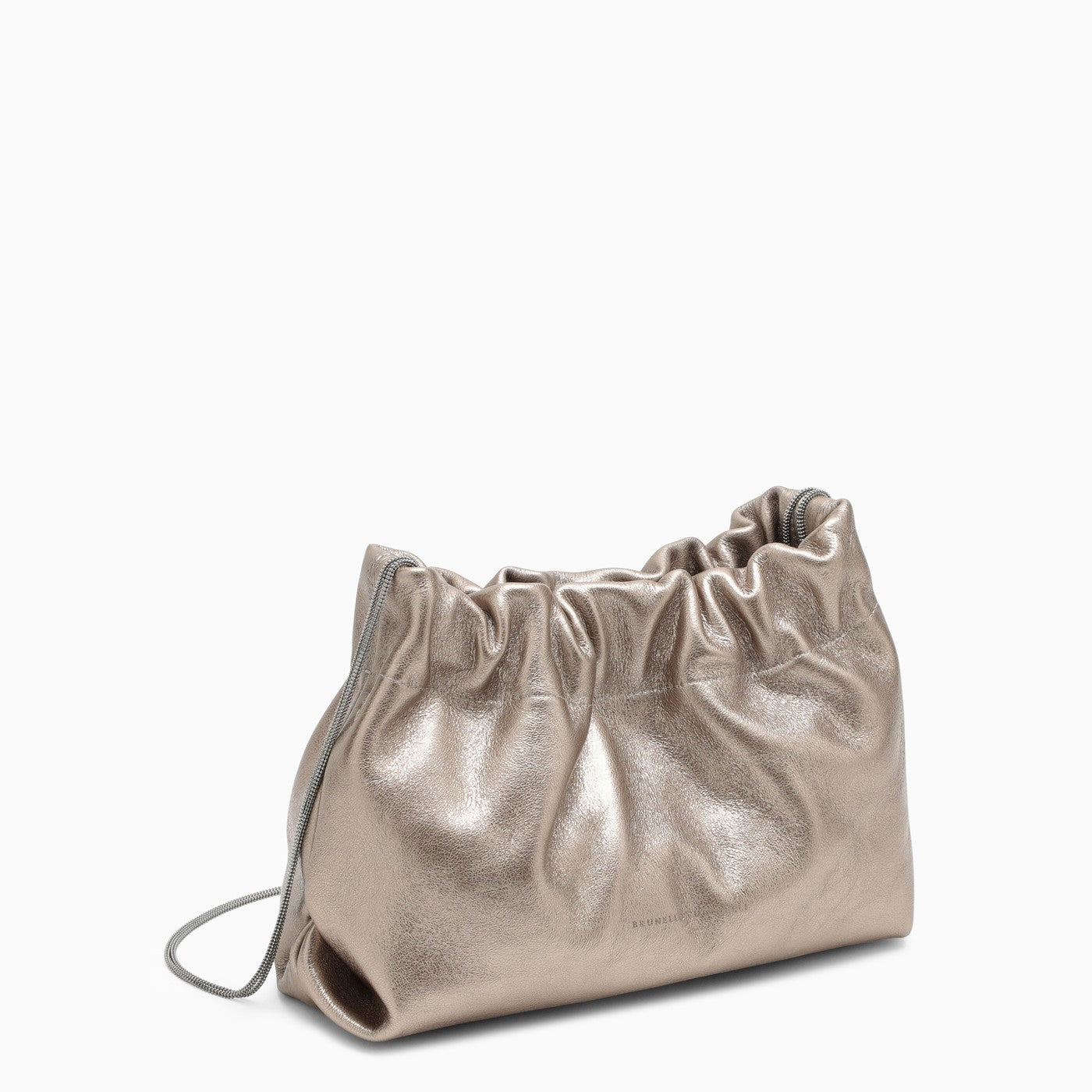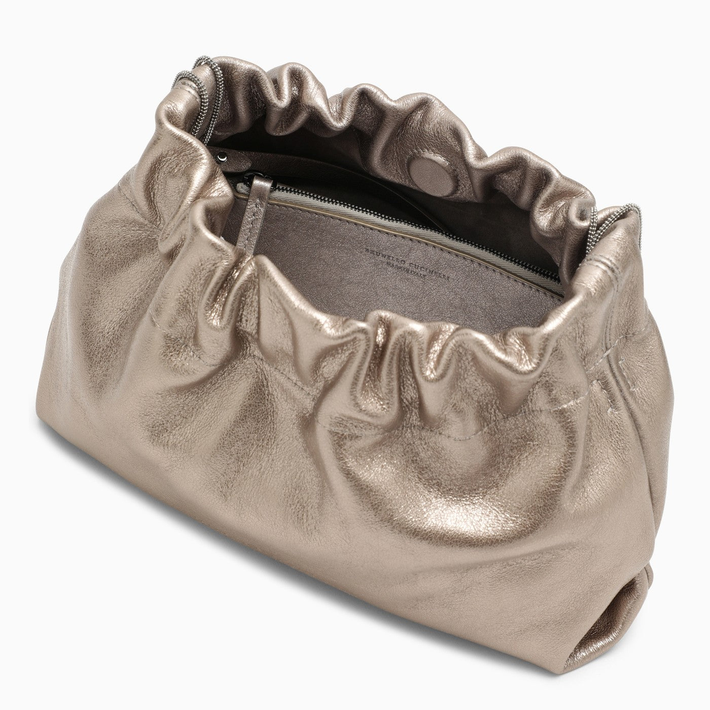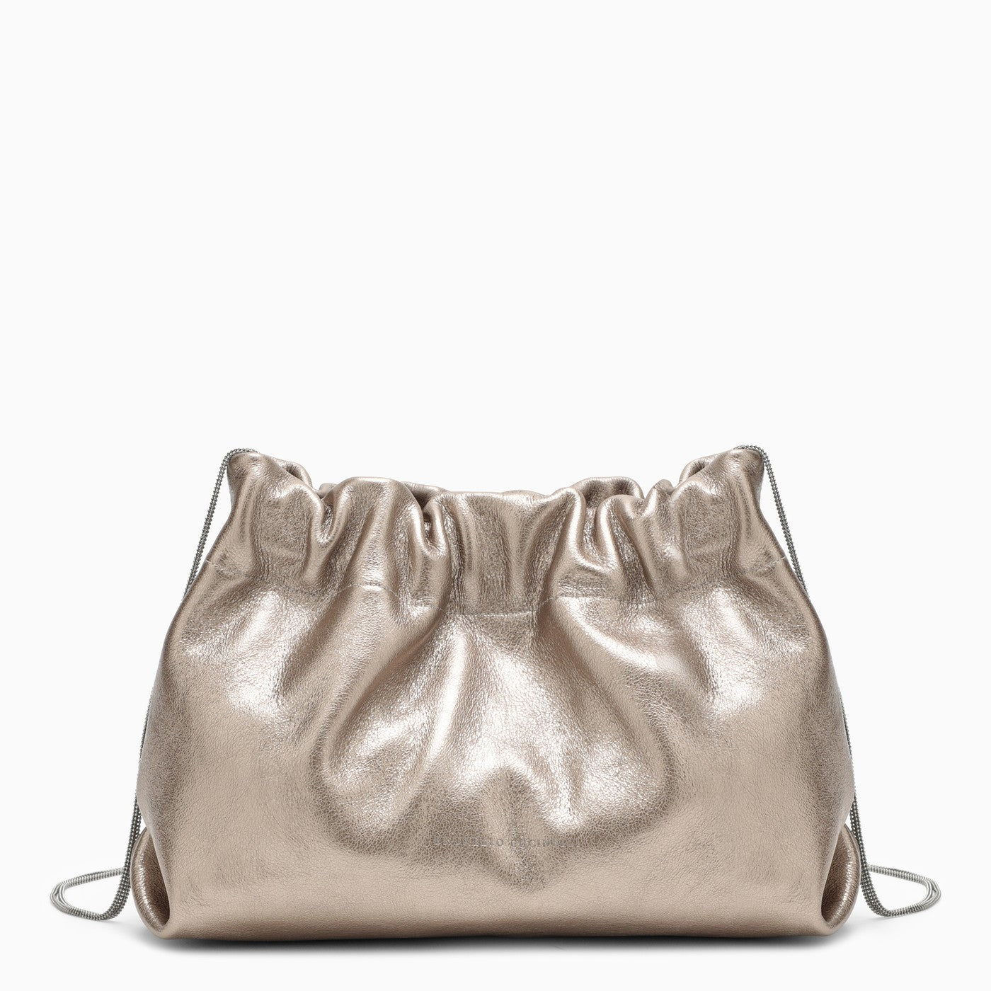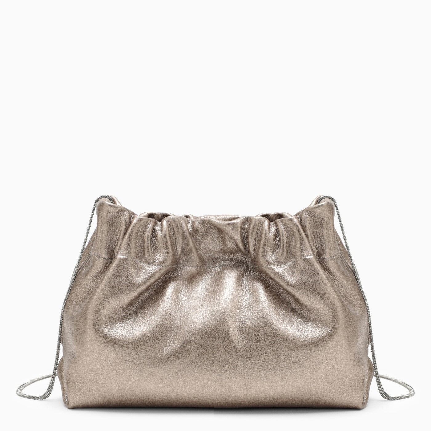 Borsa in pelle color perla di Brunello Cucinelli con un fissaggio a magnete, tracolla, clutch zippato interno rimovibile e logo di lettere anteriore tono su tono.