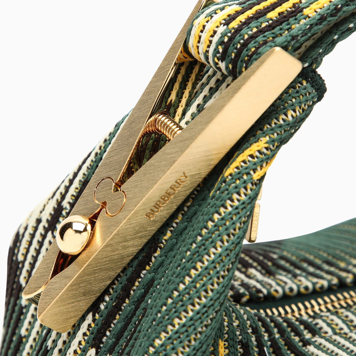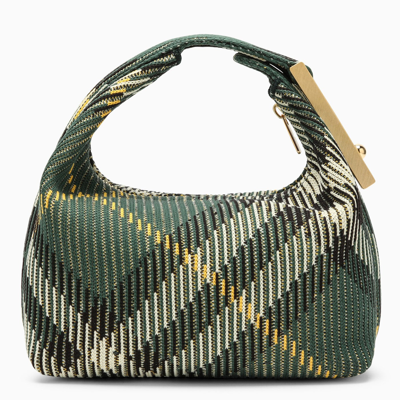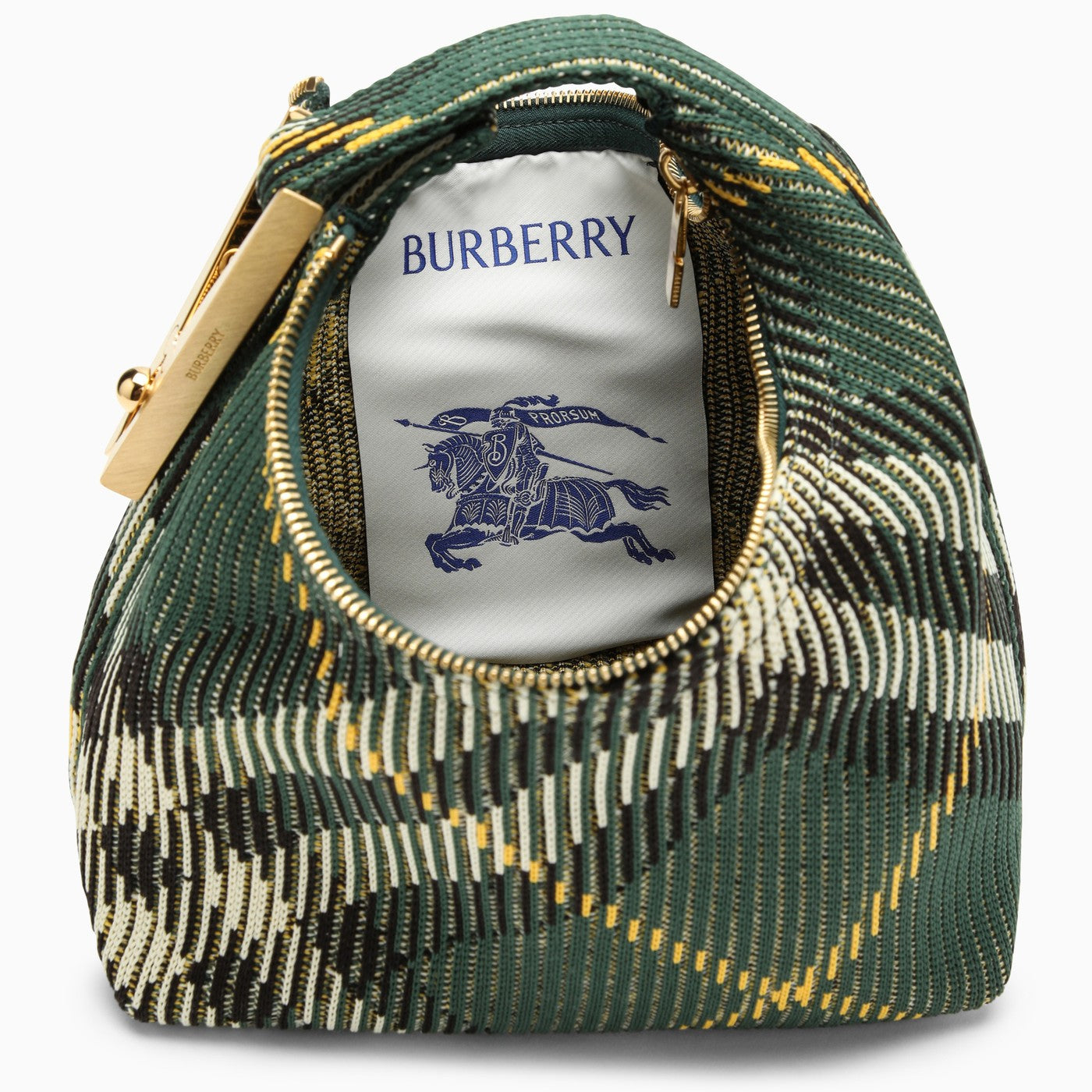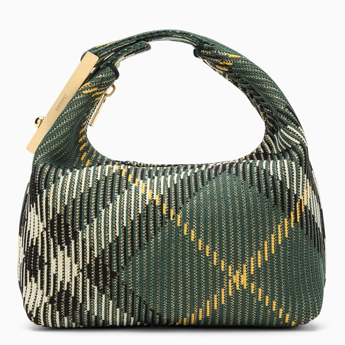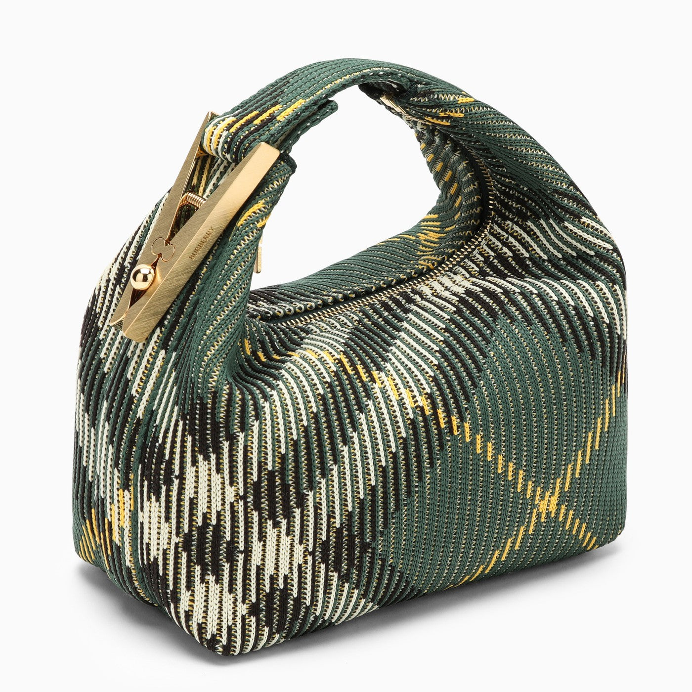 PEG MINI Duffle Bag di Burberry in tessuto verde, con una maniglia superiore, dettagli laterali del molet in metallo in metallo e una chiusura a zip.