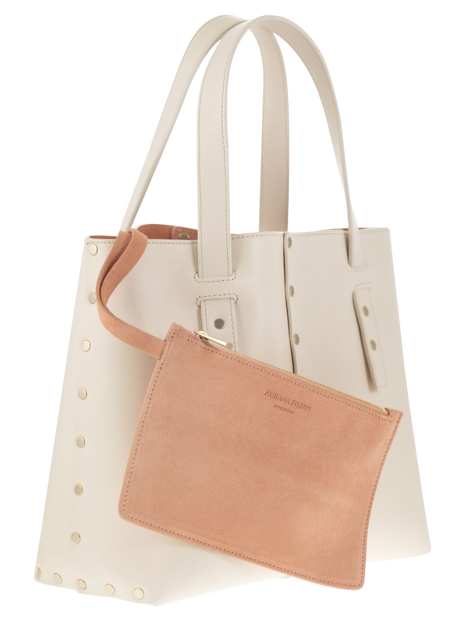 Versatile mini tote bag con l'inconfondibile stile Fabiana Filippi. L'accessorio combina la pelle di vitello morbida con un motivo a botte energico. - motivi per prigionieri - borsa della frizione interna - pelle vera - ID designer di fodera in pelle scamosciata: BGD264A774 I337 0145