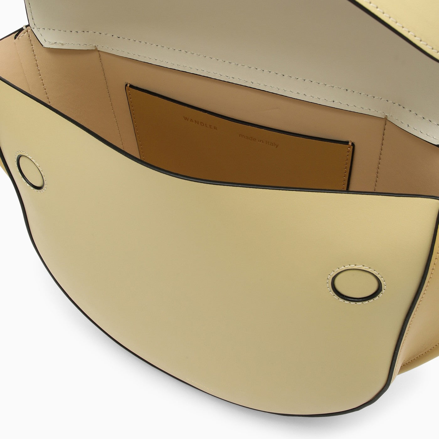 Borsa a tracolla in pelle sandy sfumature di Wandler. Con una chiusura a patta magnetico, una maniglia superiore, una tracolla regolabile e rimovibile, un vano zip posteriore, una tasca piatta interna, hardware in metallo tono oro e un logo in rilievo nella parte anteriore.