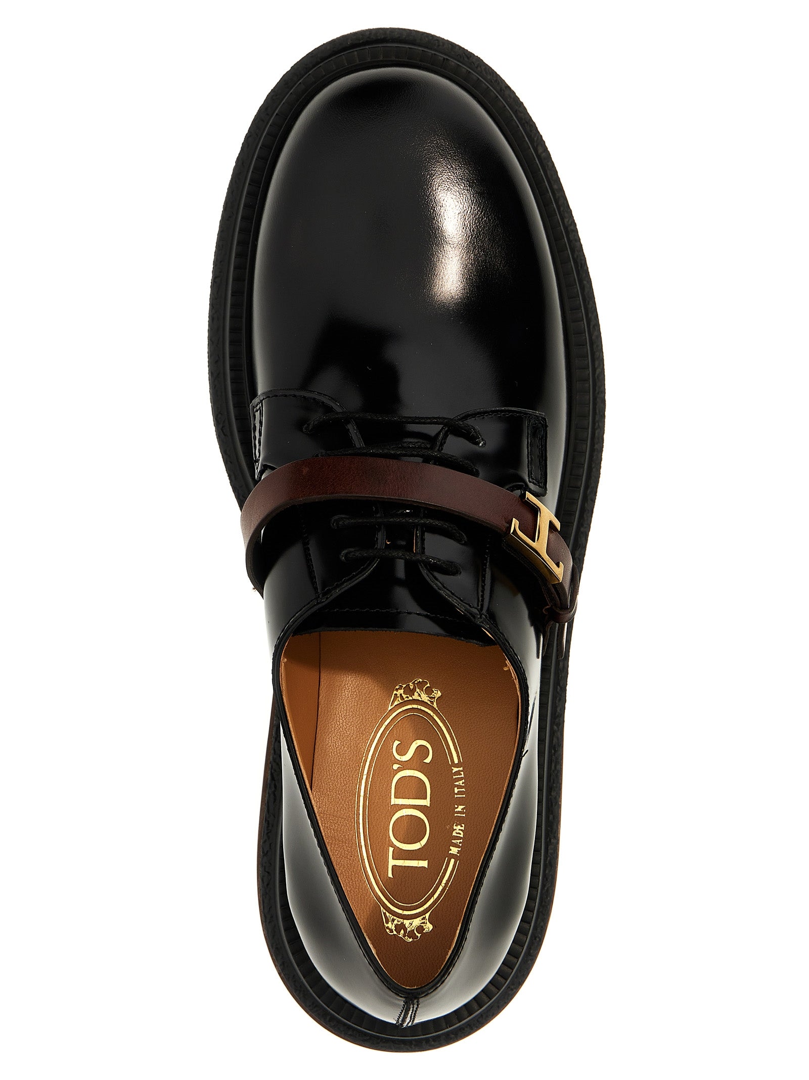 Lacci in pelle semi-lucida su lacci, cinturino regolabile con dettagli timeless in metallo, tallone in pelle e suola Eva.