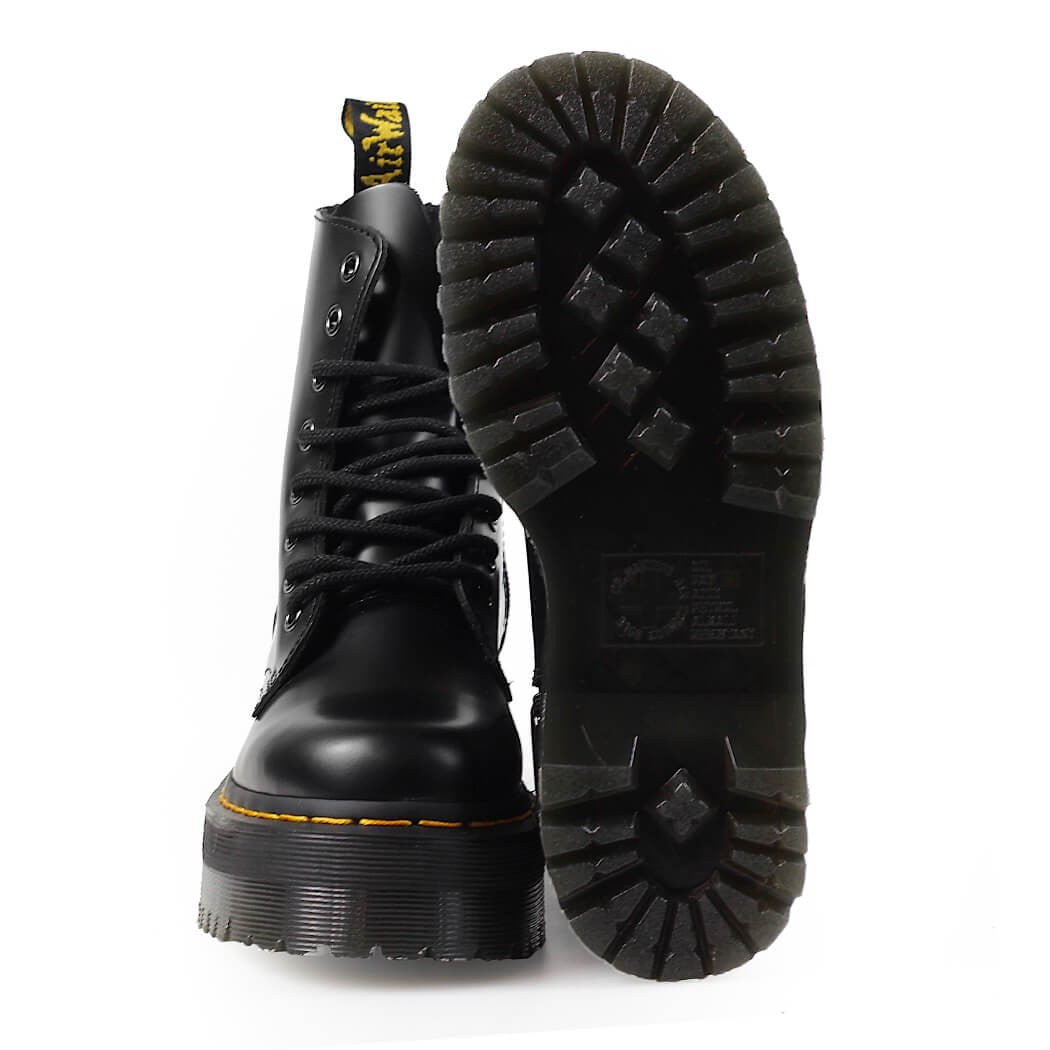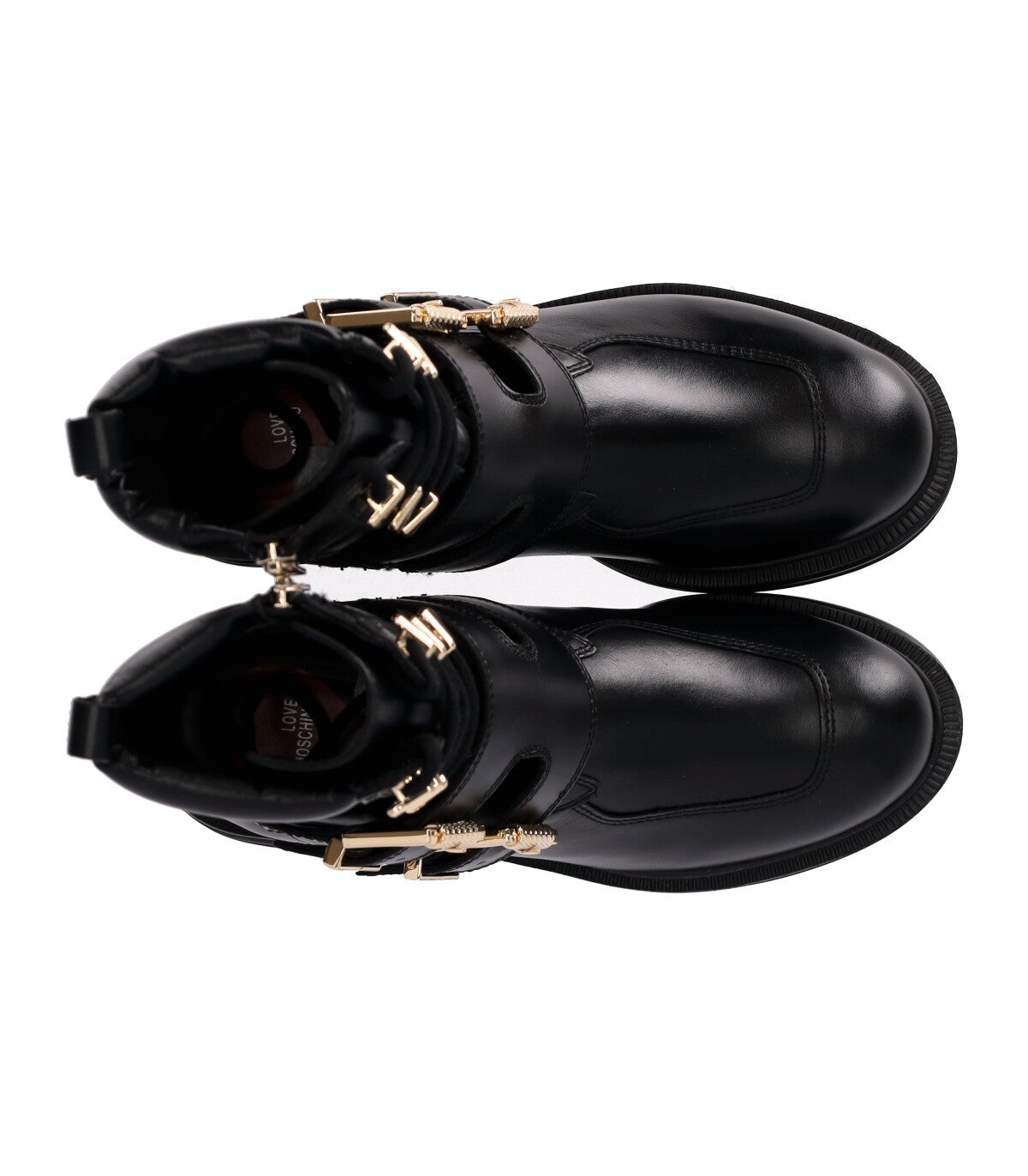 Stivale da combattimento Malibu da via Roma 15 in pelle nera. Interni e soletta in pelle, chiusura con lacci, zip e cinghie con fibbia regolabile. TOE TOUND, suola in gomma nera. Altezza 5 cm.