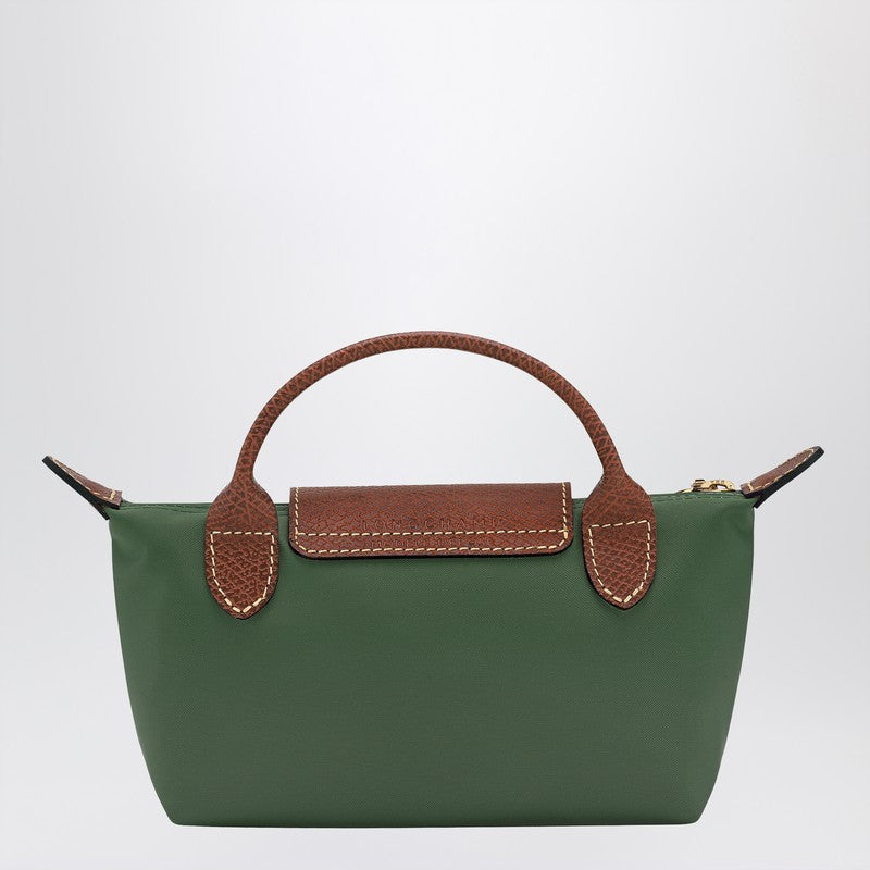 Mini borsa in tessuto riciclato verde di Longchamp, con una maniglia superiore, fissaggio con zip con stalloni a lembo e stampa e dettagli in pelle.