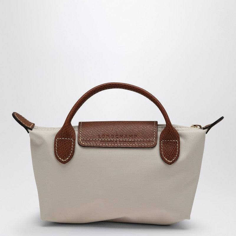 Mini borsa in tessuto riciclato di colore di carta di Longchamp, con una maniglia top, fissaggio con zip con stalloni a lembo e stampa e dettagli in pelle.