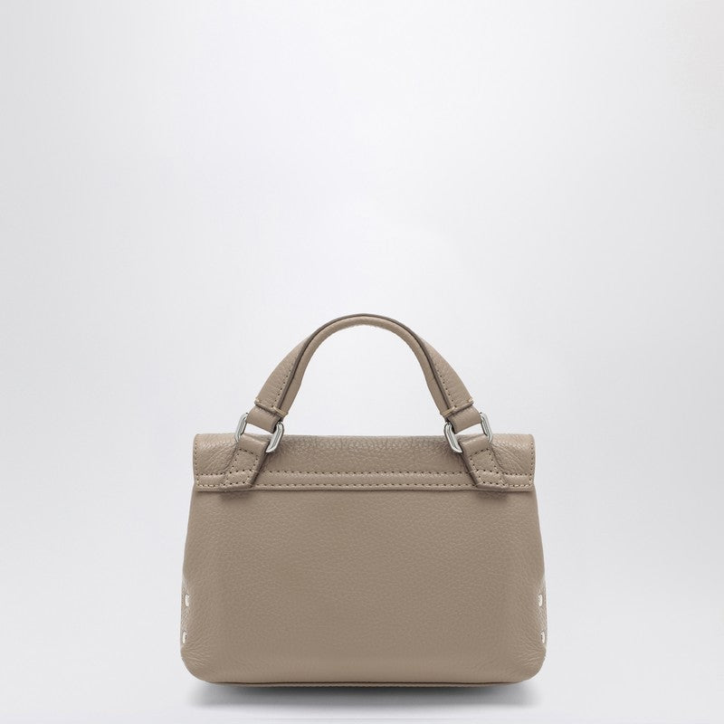 Borsa a mano di dimensioni per bambini di Zanellato in cuoio martellato di colore creta, caratterizzato da un lembo con chiusura a doppia curva, maniglia superiore, tracolla regolabile e rimovibile, una tasca interna piatta e hardware in metallo color argento.