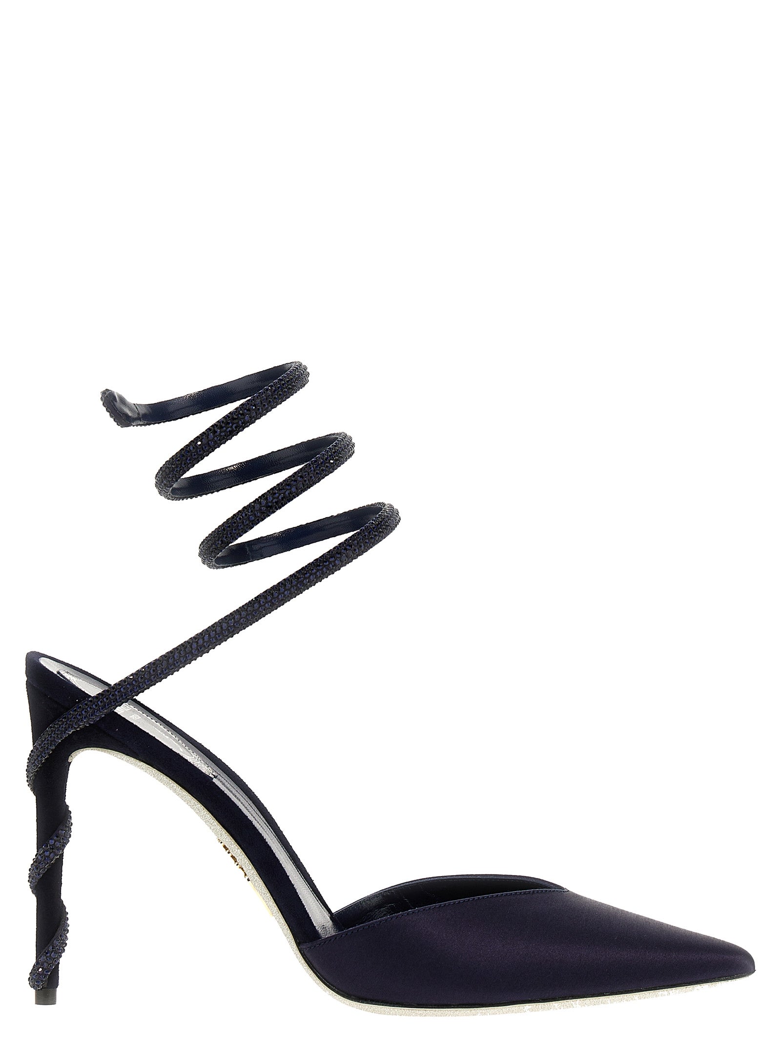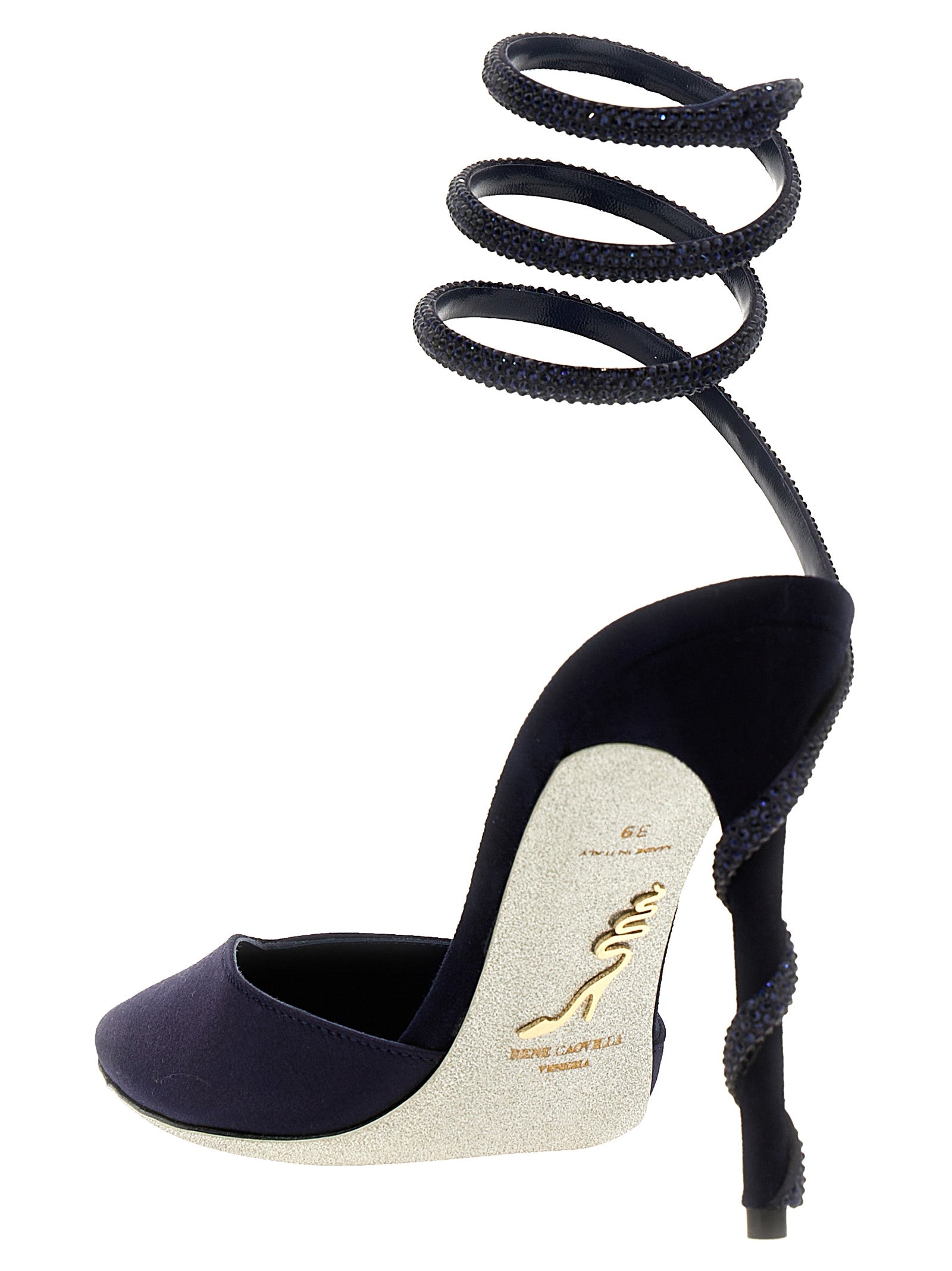 Muli di raso "Margot" impreziositi da una spirale di cristalli che iniziano dal tallone a spillo.