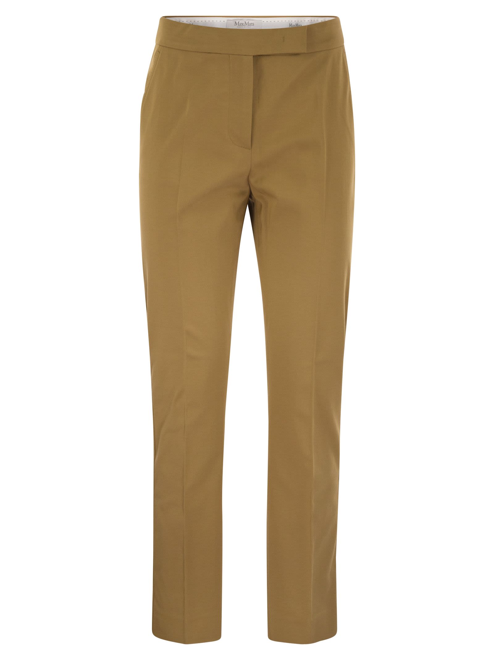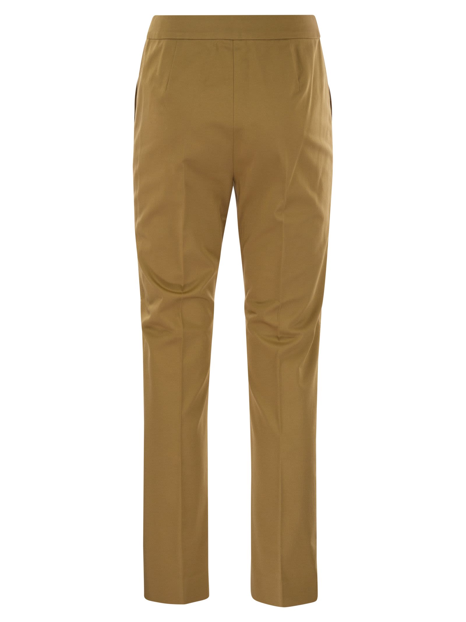 Allungi i pantaloni di raso di cotone con una silhouette dritta chiusa leggermente sul fondo e ritagliata alla caviglia. Il modello è rifinito con una piega stirata e tasche francesi sui fianchi. Cintura ad alta quota, zip con lembo e fissaggio del gancio. - Lunghezza alla caviglia - ID Slim Designer: 2511131072600 070