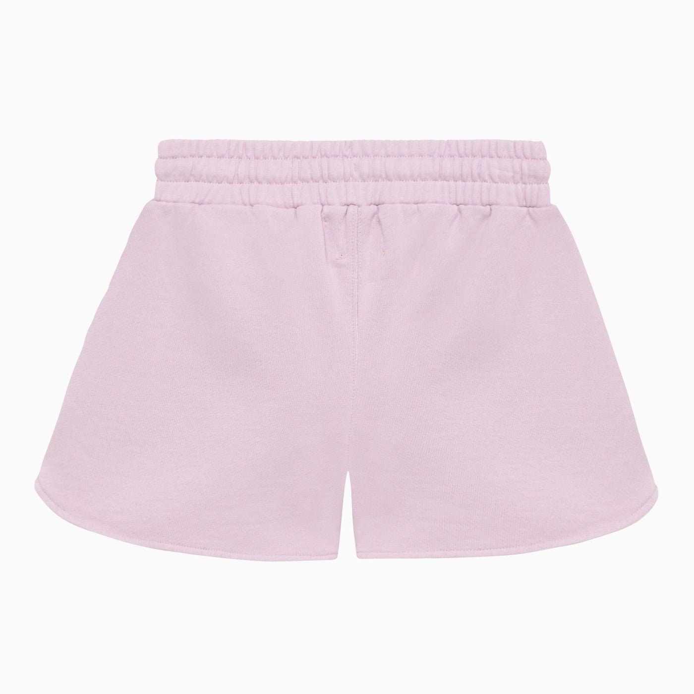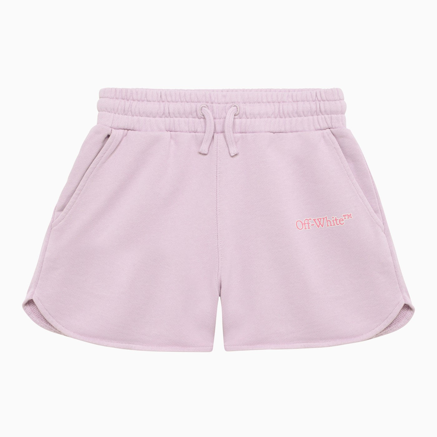 Shorts di cotone Lilac di Off-White con una cintura elasticizzata con corse, tasche laterali e un logo di lettere rosa contrastante sul davanti.