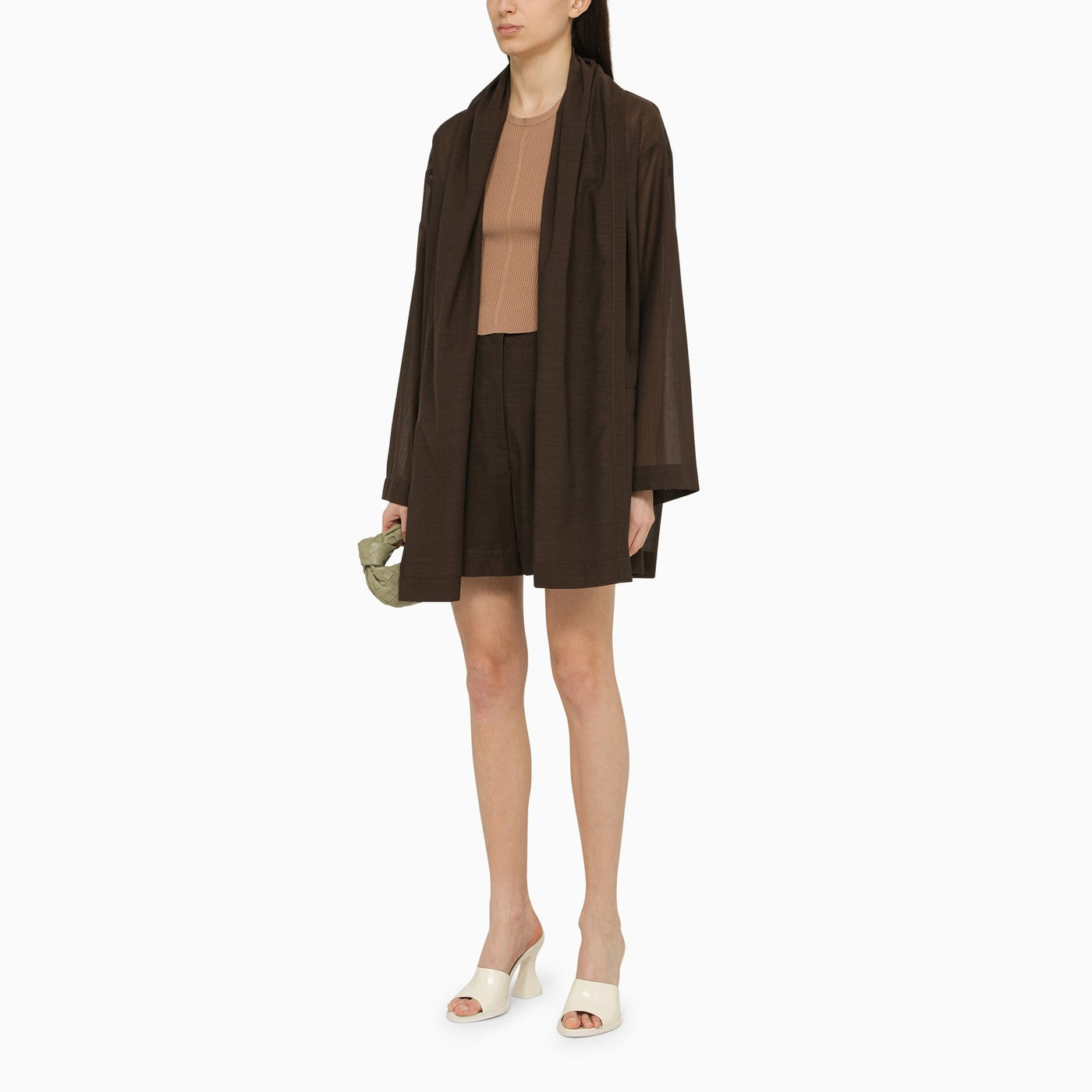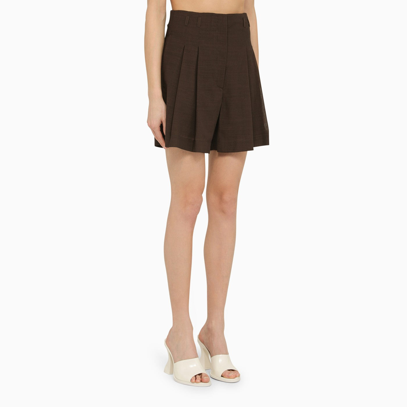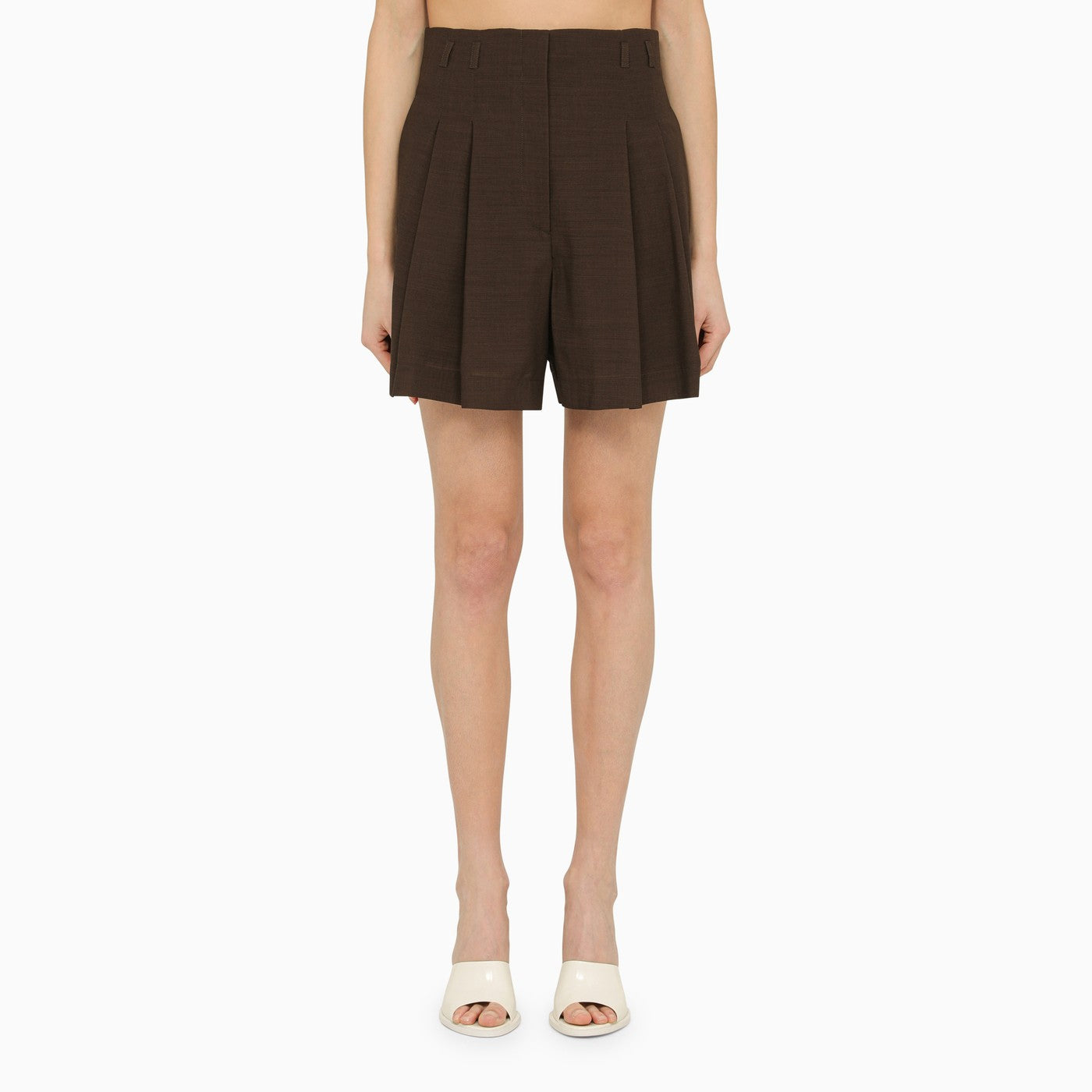 Philosophy brown lana di lana di Lorenzo Serfini Shorts con zip anteriore e fissaggio di gancio, anelli della cintura, due tasche laterali a taglio e una vita alta.