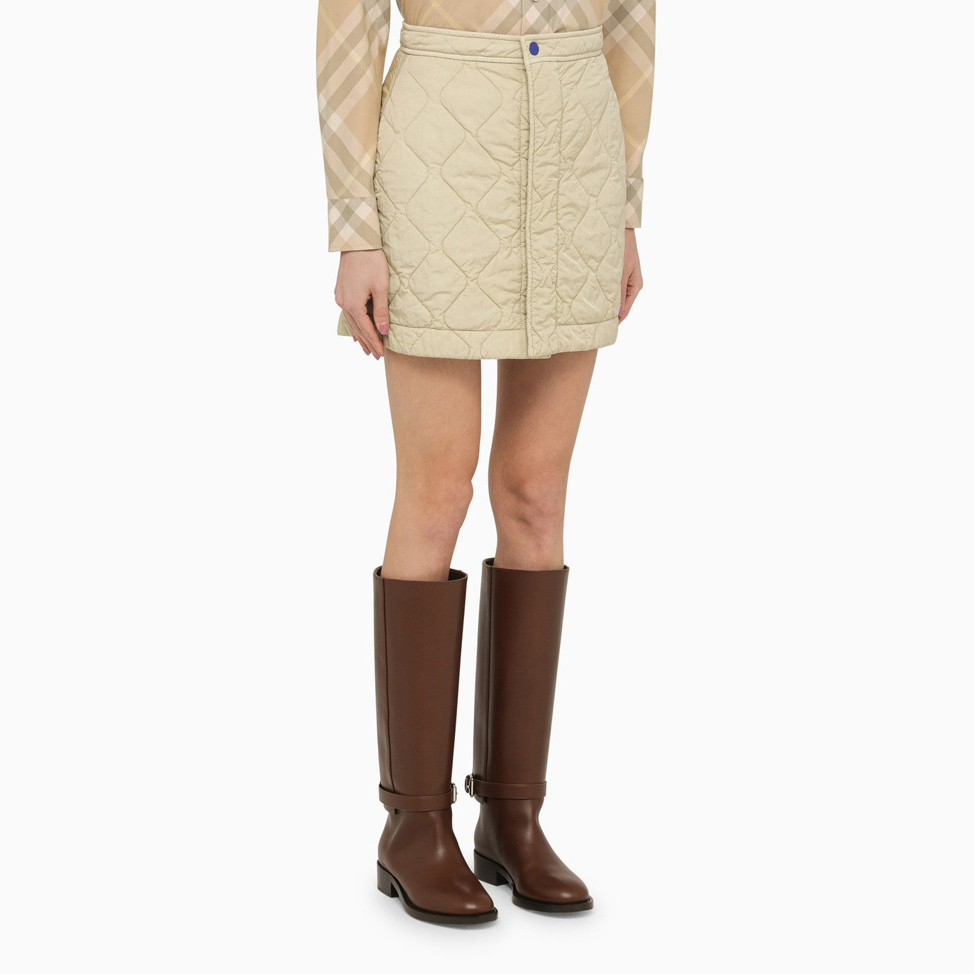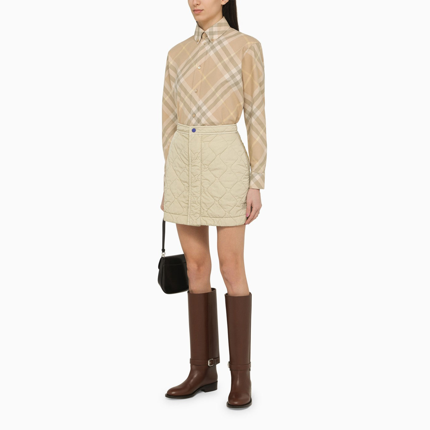 Mini gonna di nylon beige di Burberry con un design trapuntato, un fissaggio a scatto anteriore, due tasche laterali a Welt e un logo ricamato a tono.