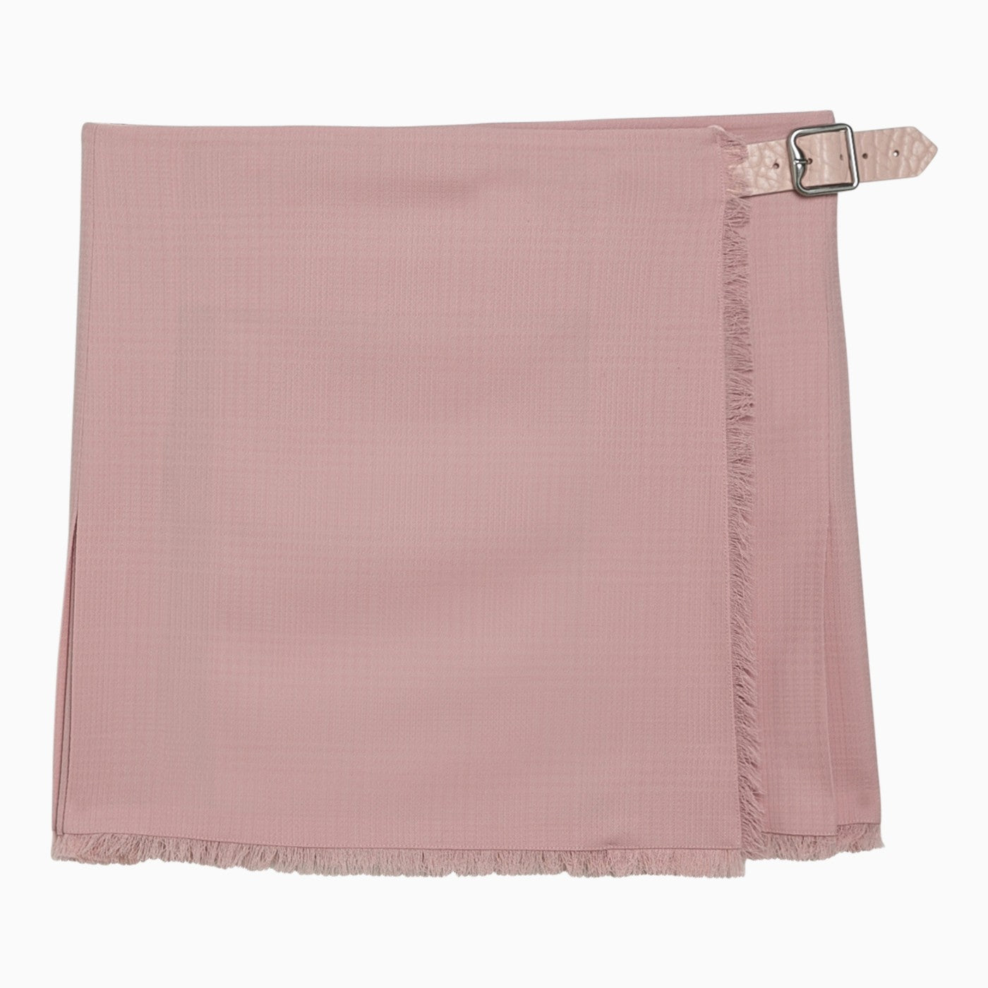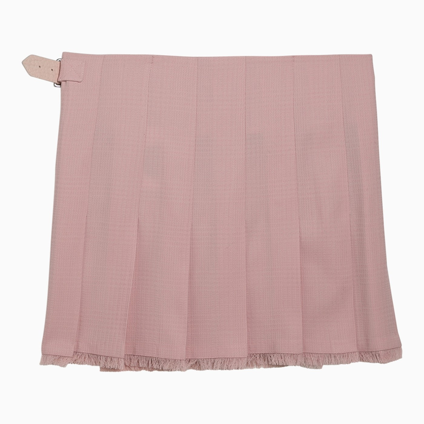 Gonna in lana di cammeo rosa di Burberry con un modello di controllo Prince of Wales con un effetto strutturato, pieghe, sfernida sottili, una cinghia di fibbia e un pulsante laterale e un fissaggio della cinghia.