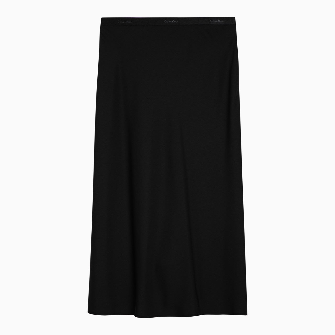 Gonna nera Calvin Klein Midi con chiusura con zip laterale, cucitura tono su tono e lettere di logo tono-su tono alla cintura.