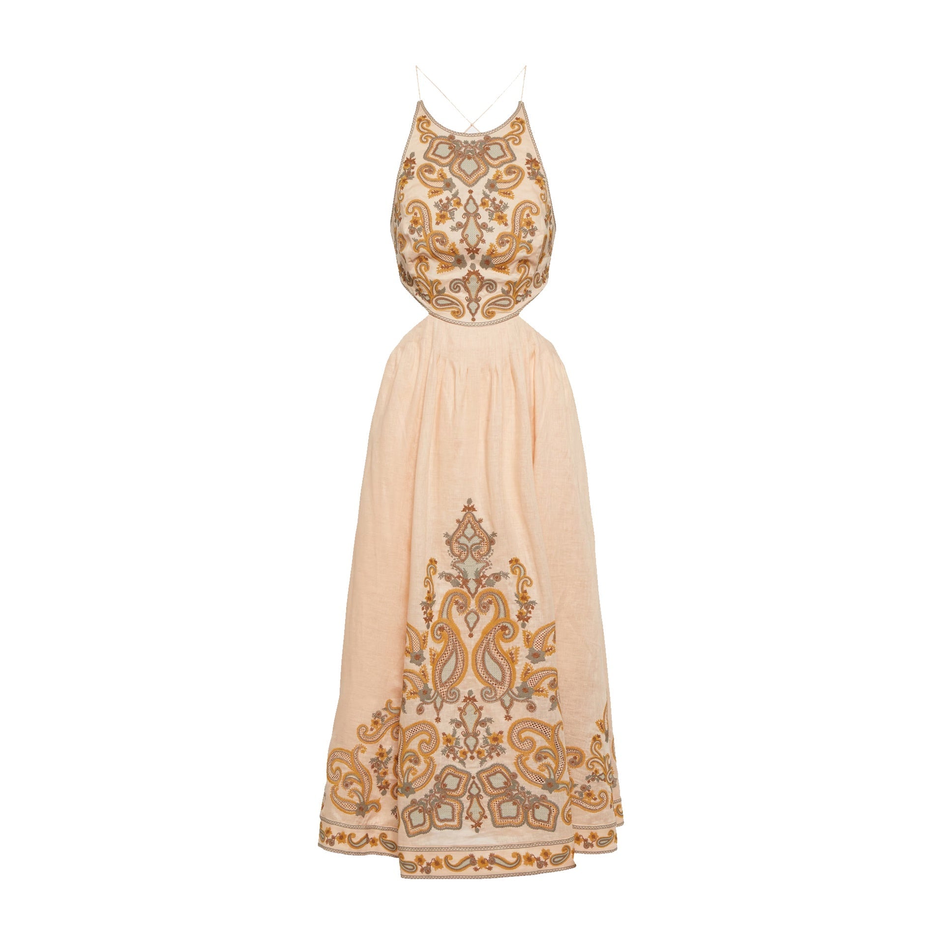 - Composizione: lino 100% - fodera: cotone - senza maniche - Dettagli ricamati - Crossover Rouleau Straps - Ornate Paisley Motivi - Essence bohémien - Made in Cina -